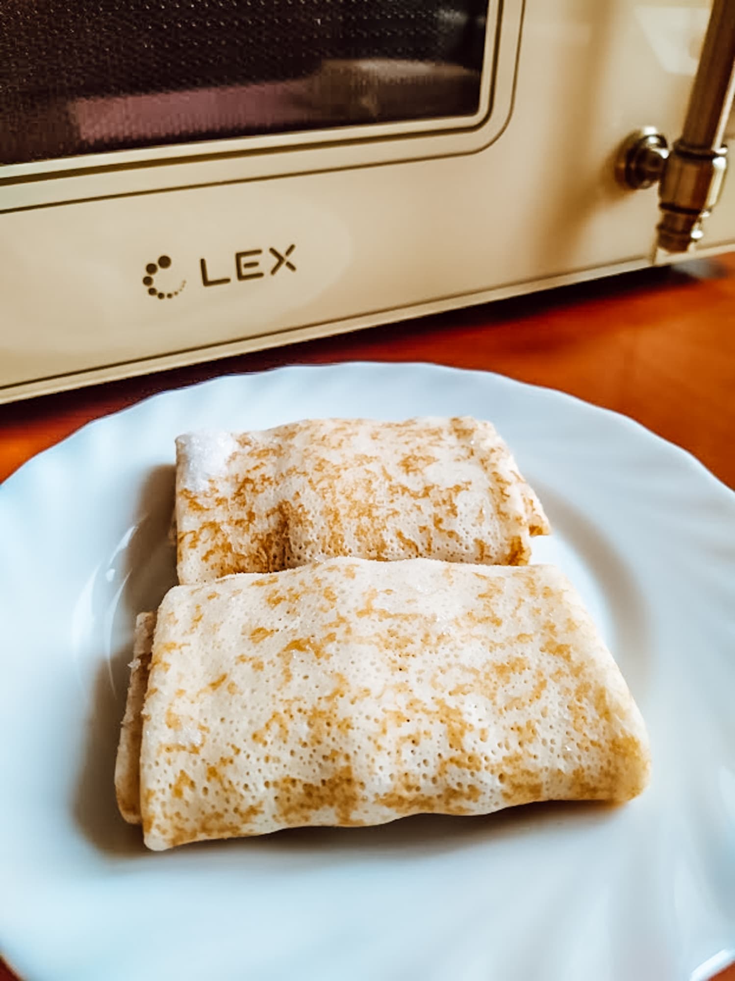 Для этого теста мы взяли замороженные готовые блинчики. На упаковке было указано рекомендованное время приготовления — 2-3 минуты на мощности 800 Вт.