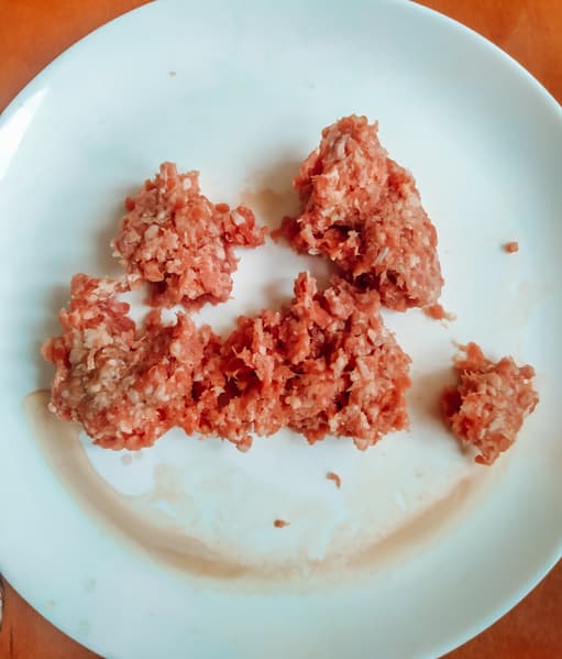 Через 15 минут у нас остался только маленький мясной комок на 140 граммов.
