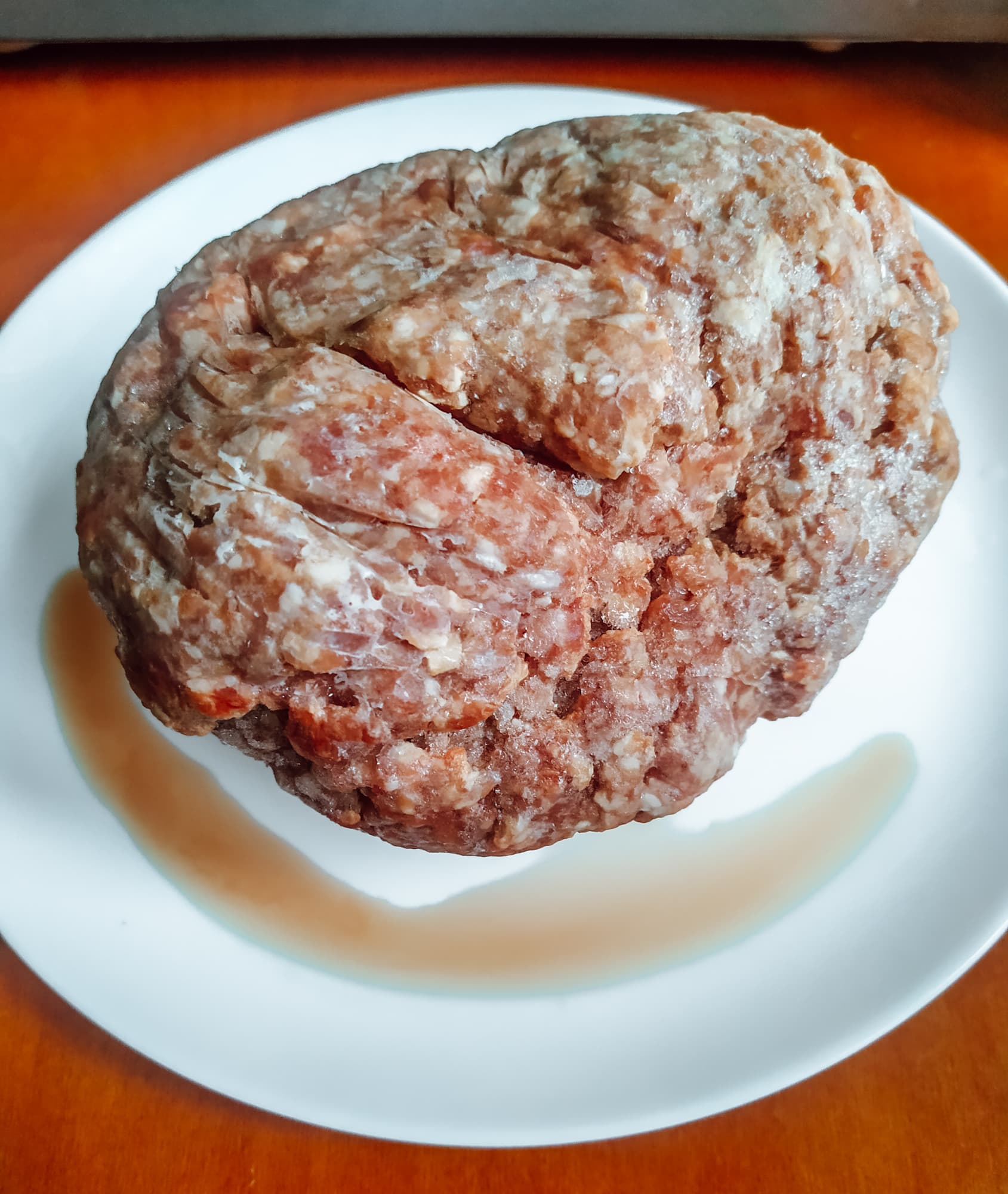 Для этого теста мы извлекли из морозилки давно знакомый нашим постоянным читателям 800-граммовый шар из смешанного фарша, по консистенции в этот момент похожий на знаменитое оружие пролетариата.