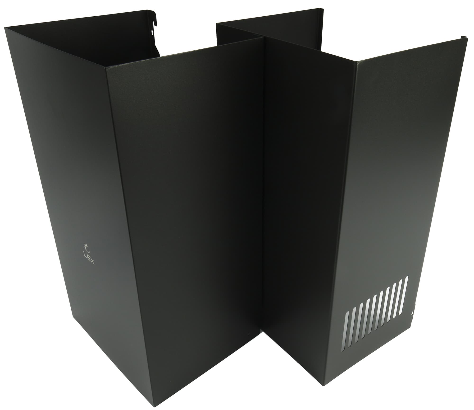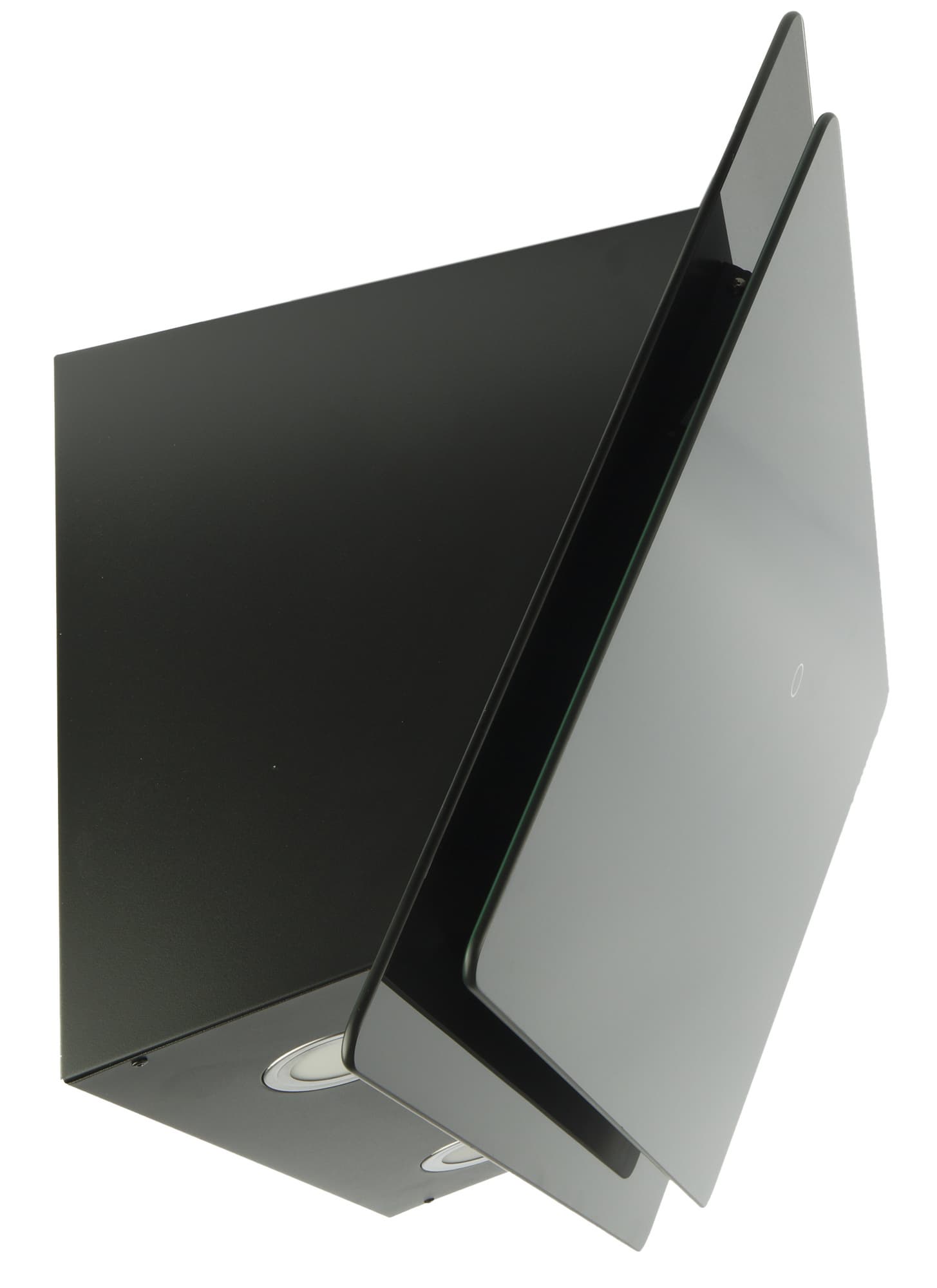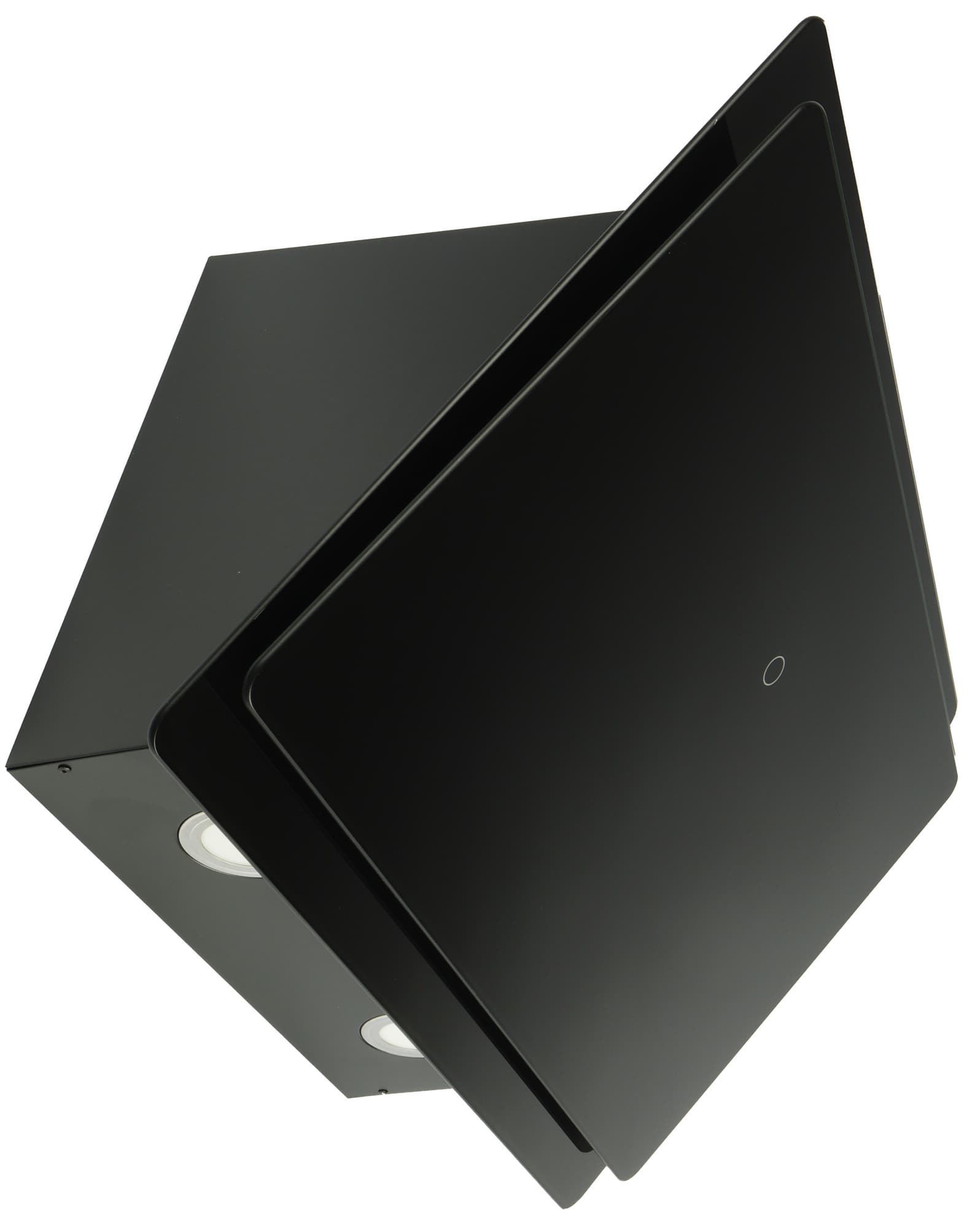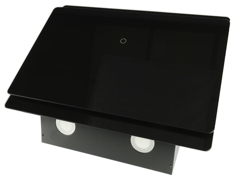 Передняя панель вытяжки Lex Furia 600 представляет собой два экрана из закаленного стекла. Они окрашены с внутренней стороны в черный цвет. Отметим, что данная модель доступна в трех цветовых решениях: черном, как на наших фотографиях, белом и цвета слоновой кости. При этом металлическая часть корпуса будет окрашена в тот же цвета, что и экраны.