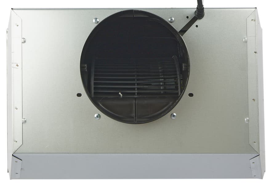 За решеткой фильтра располагается цилиндрический вентилятор в пластиковом корпусе. При использовании вытяжки в режиме рециркуляции, без подключения к вытяжному каналу, на оба его торца устанавливаются сменные угольные фильтры, впитывающие загрязнения и поглощающие запахи.