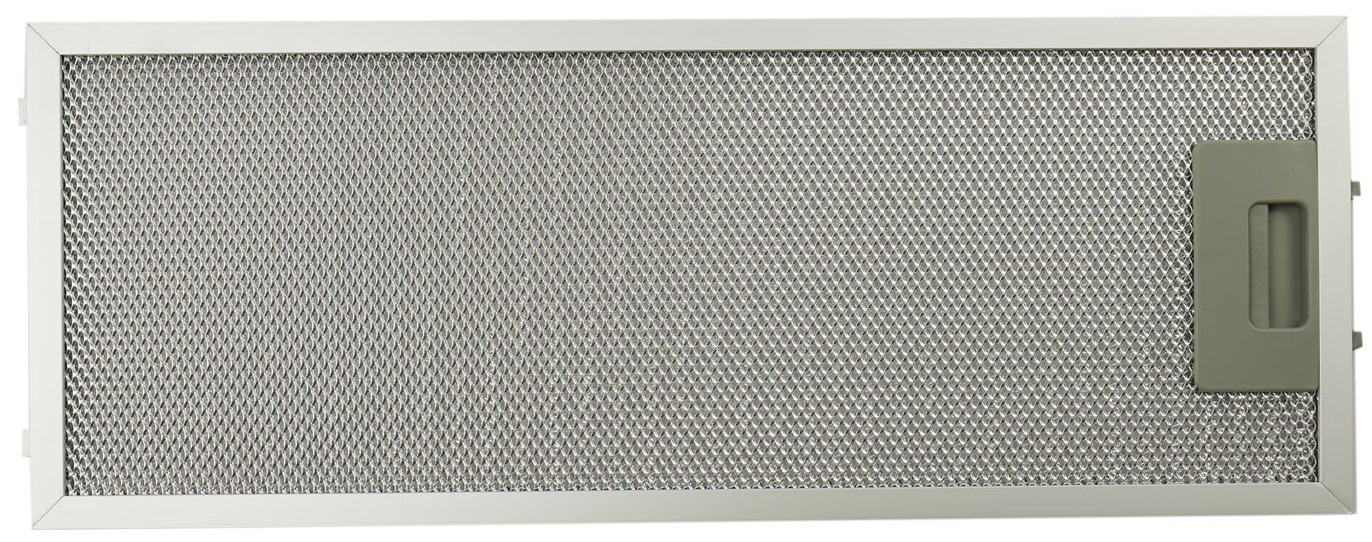 Жироулавливающий фильтр представляет собой традиционную трехмерную алюминиевую сетку, смонтированную на металлической рамке с пластиковой защелкой.