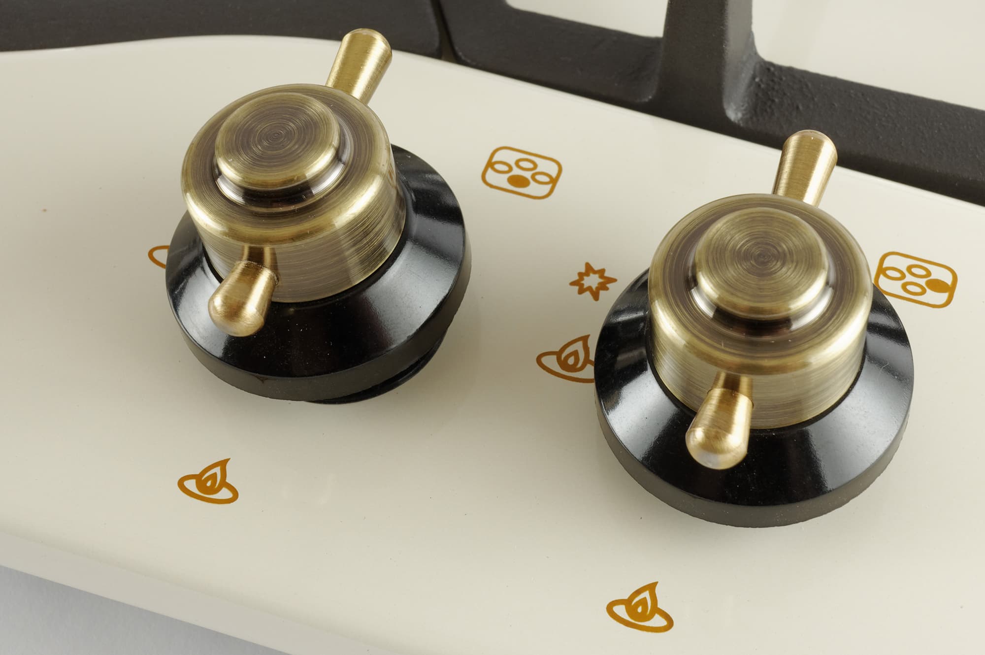 Газовая поверхность GVE 6043C IV входит в коллекцию Lex Vintage. Она выглядит очень интересно и отлично впишется в интерьер в ретро-стиле или в стиле Прованс. Изогнутые чугунные решетки добавляют панели изящества, а ручки управления под бронзу прекрасно дополняют образ. В целом, от дизайна прибора у нас остались только положительные впечатления.
