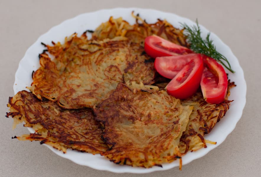 Мы взяли 5 кг сырого чищенного картофеля и натерли его мелко и средне.