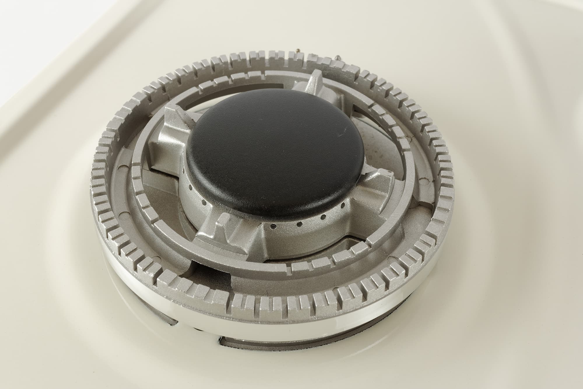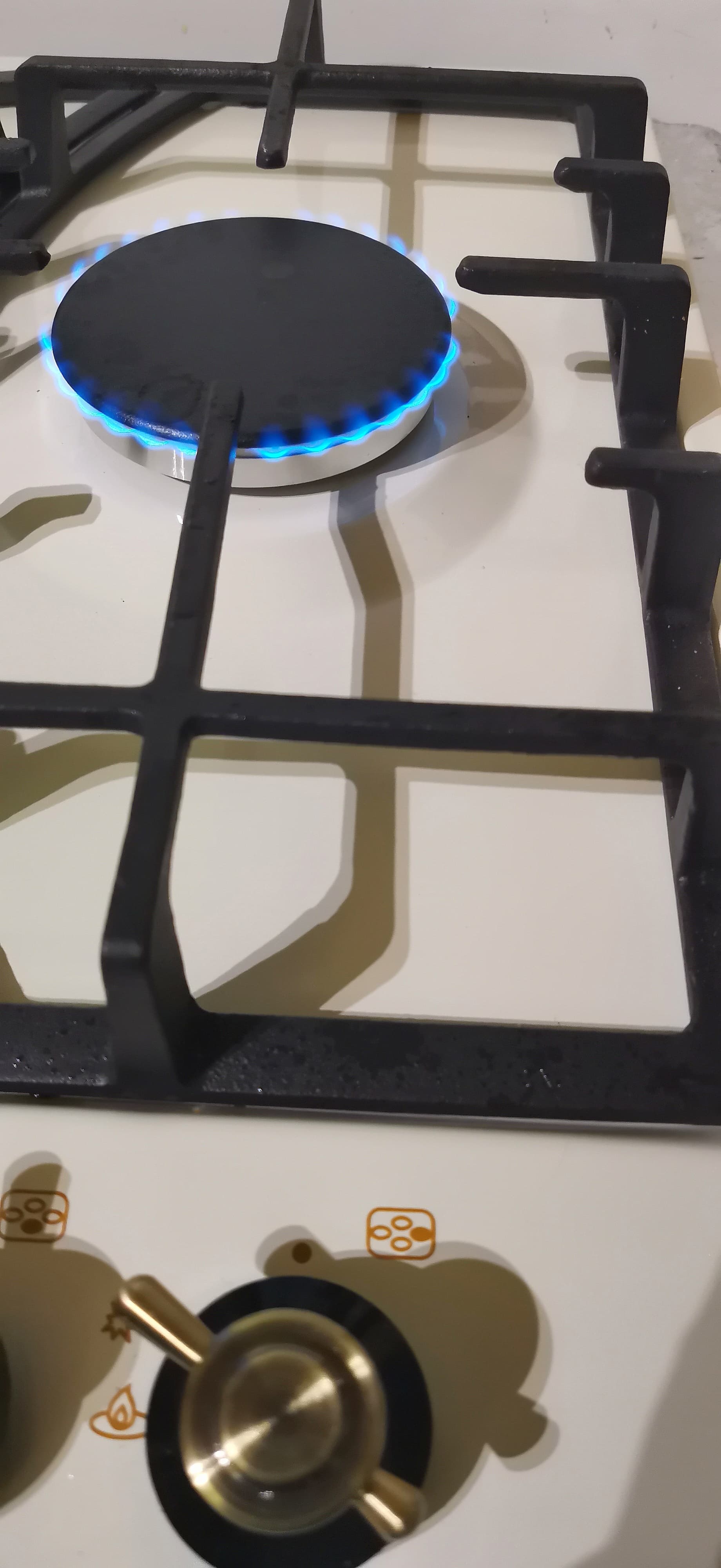 Электроподжиг работает корректно — конфорка зажигается быстро. Пламя стабильное, ровное, без срывов даже на самом минимуме. Благодаря тому, что электроподжиг не вынесен отдельной кнопкой, а управляется самой ручкой, газ легко зажечь одной рукой.