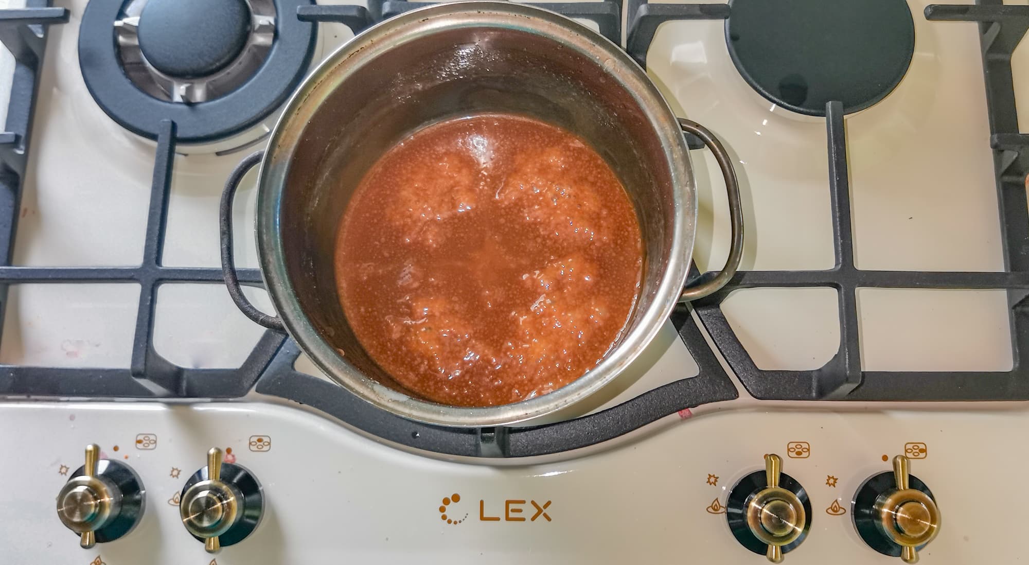 В небольшой кастрюльке мы приготовили сахарный сироп с солью и ванилью, добавили сливочное масло и сливки небольшими порциями и уваривали помадку до нужной консистенции на самом маленьком огне.