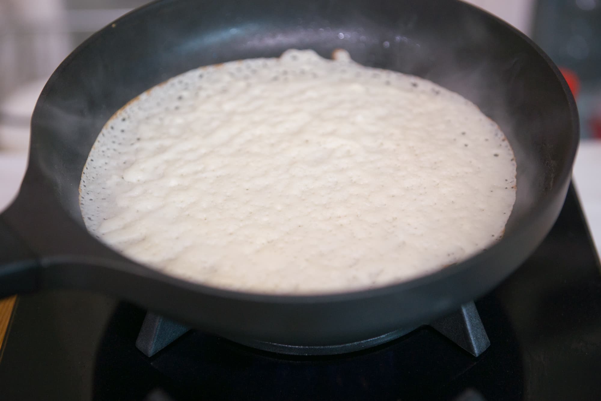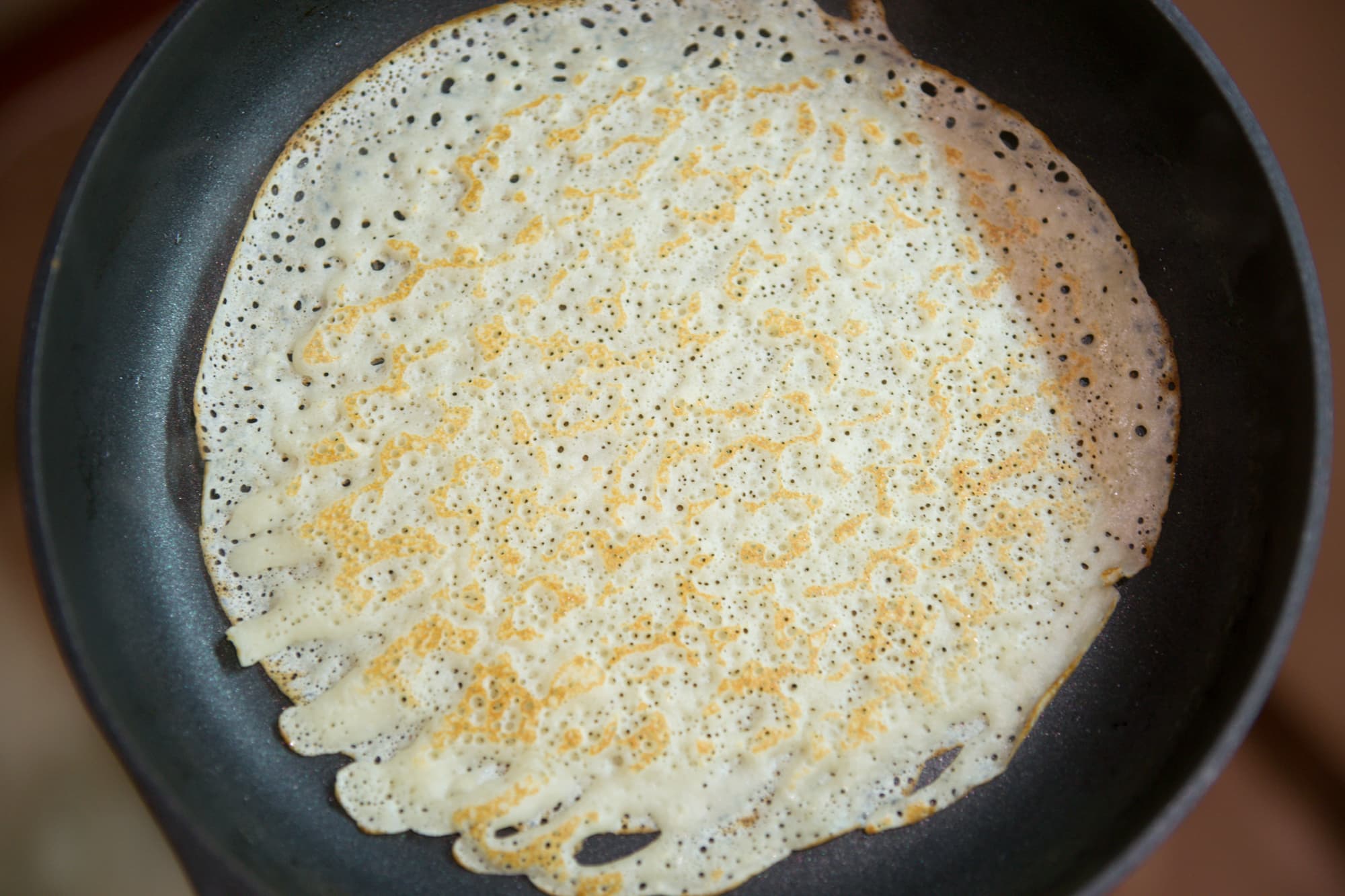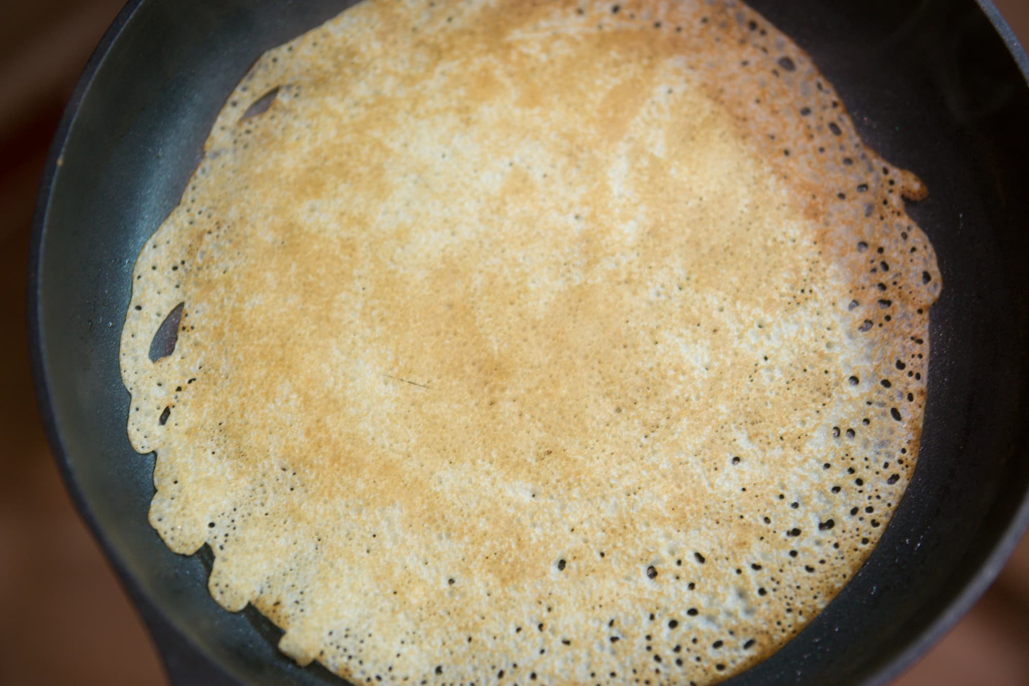 Блины мы попробовали выпекать на обеих конфорках и выяснили, что лучше всего для этого подходит именно дальняя крупная горелка.