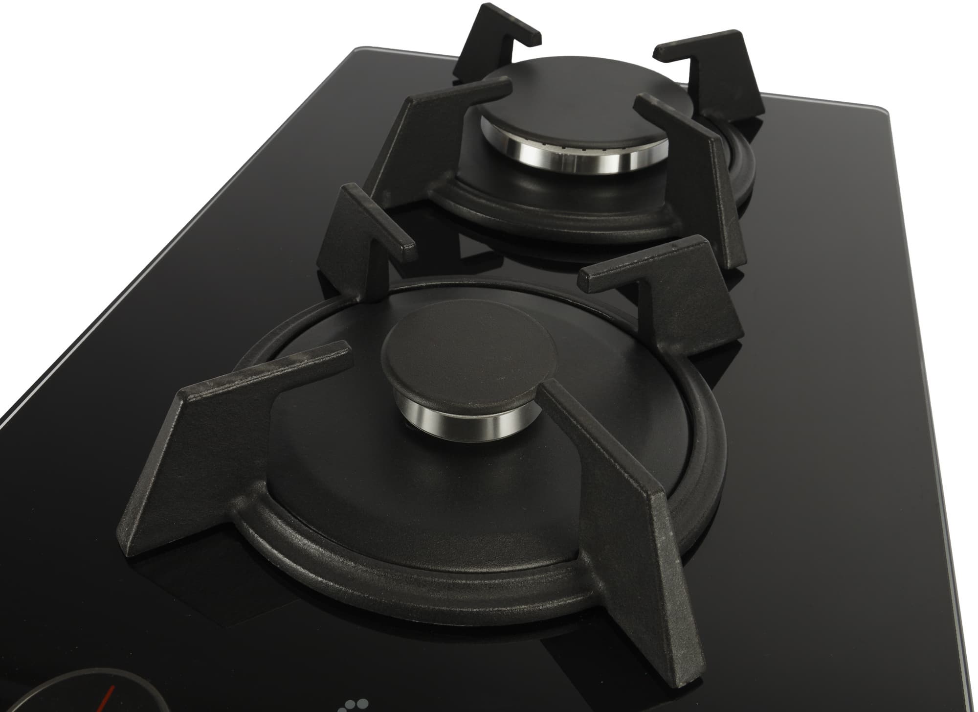 Обе они оснащены электроподжигом и газ-контролем. Для защиты от попадания жидкости внутрь конфорок предусмотрены несъемные металлические накладки.