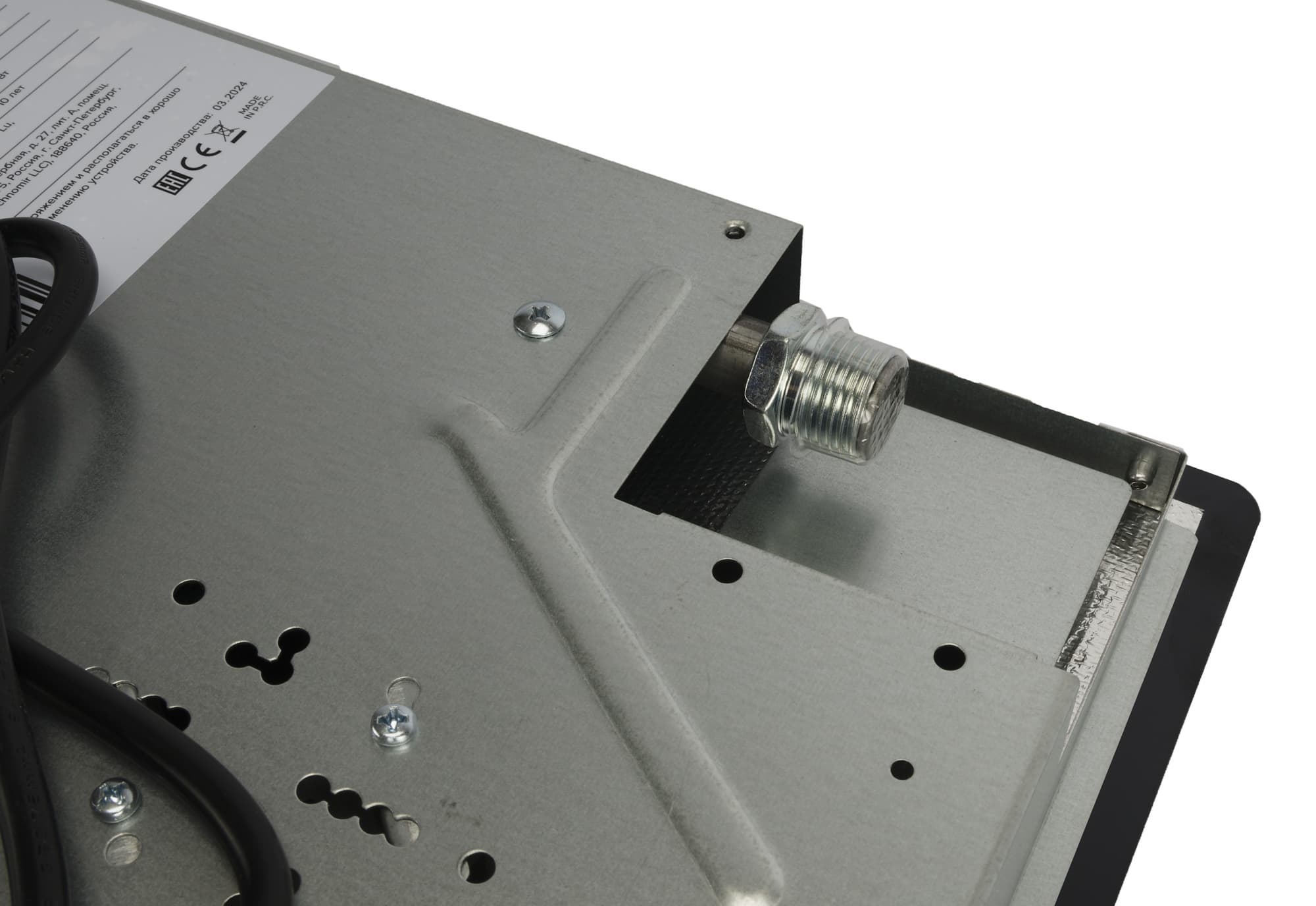 Необходимый размер ниши для монтажа — 490×270×40 мм, с нижней стороны панель удерживается крепежными элементами (фиксаторами) с помощью винтов из комплекта. Между столешницей и панелью прокладывается уплотнительная лента.
