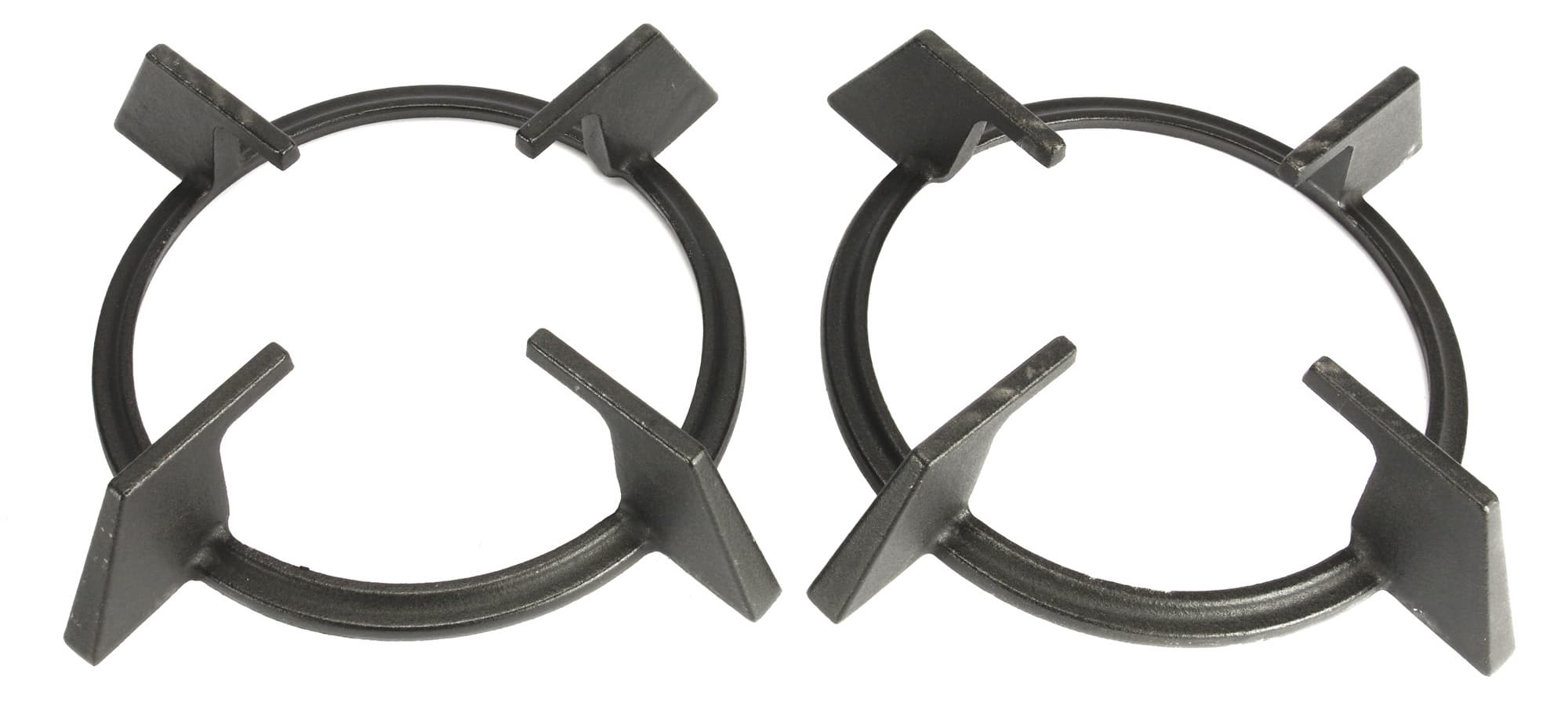 Чугунные решетки-подставки выглядят добротными. Никаких накладок, препятствующих образованию царапин на стекле с обратной стороны подставок нет. Единственное, что обнадеживает — они встают на конфорку в специальные выступы, то есть прокрутить решетку вокруг своей оси и поцарапать таким образом стекло нельзя.
