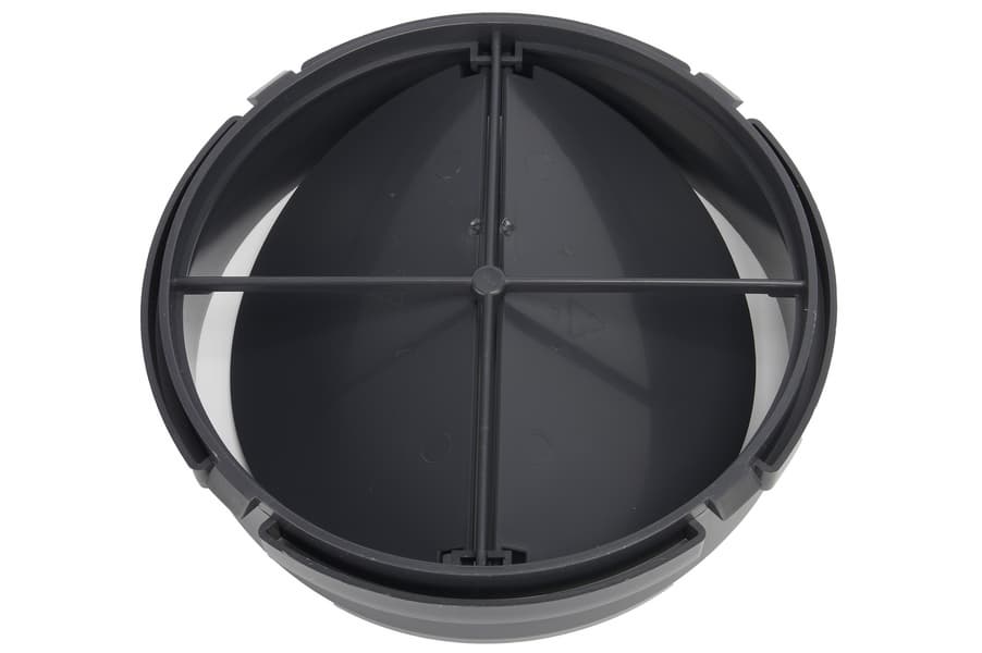 В верхней части расположено отверстие для выхода воздуха. Сюда предстоит установить антивозвратный клапан с двумя пластиковыми лепестками. Он предотвратит попадание воздуха из вентиляции обратно в помещение.