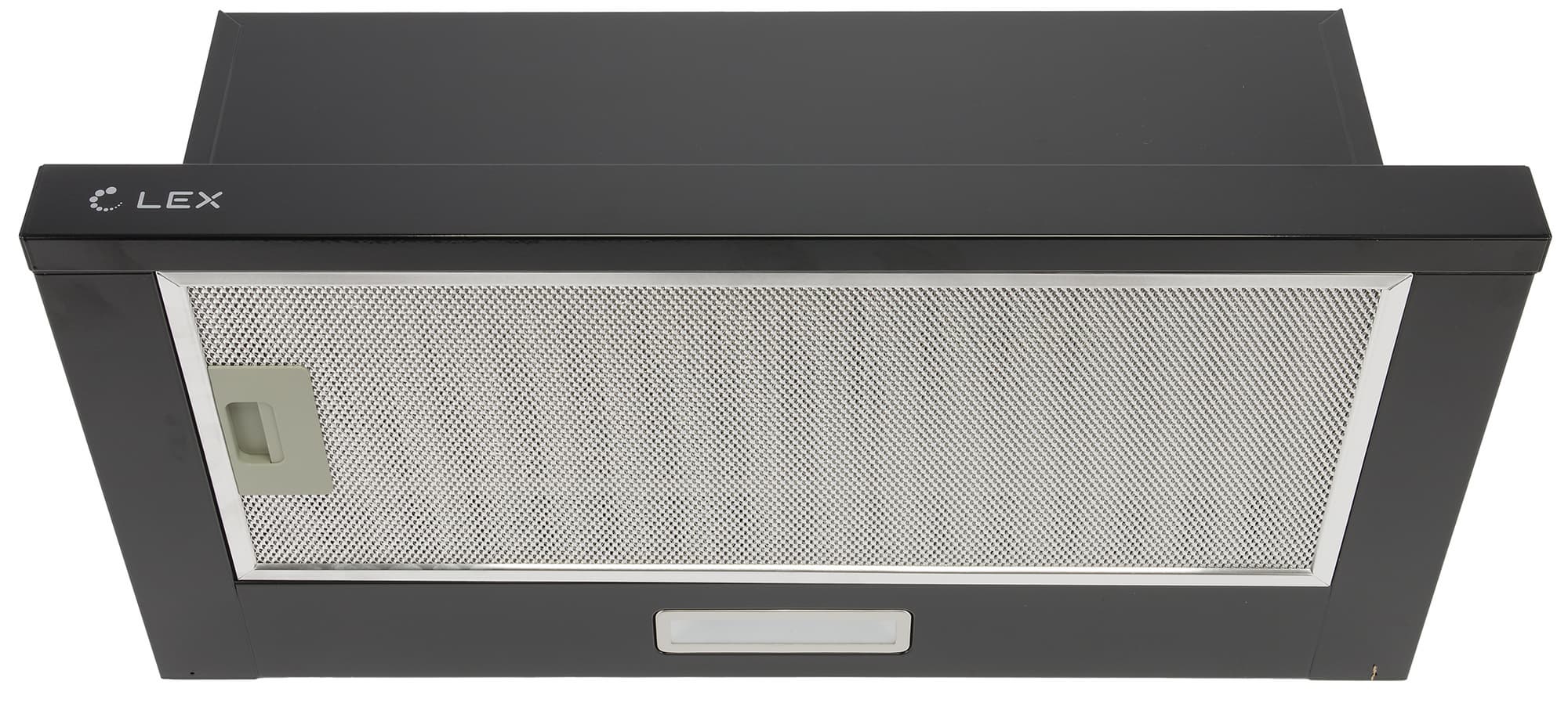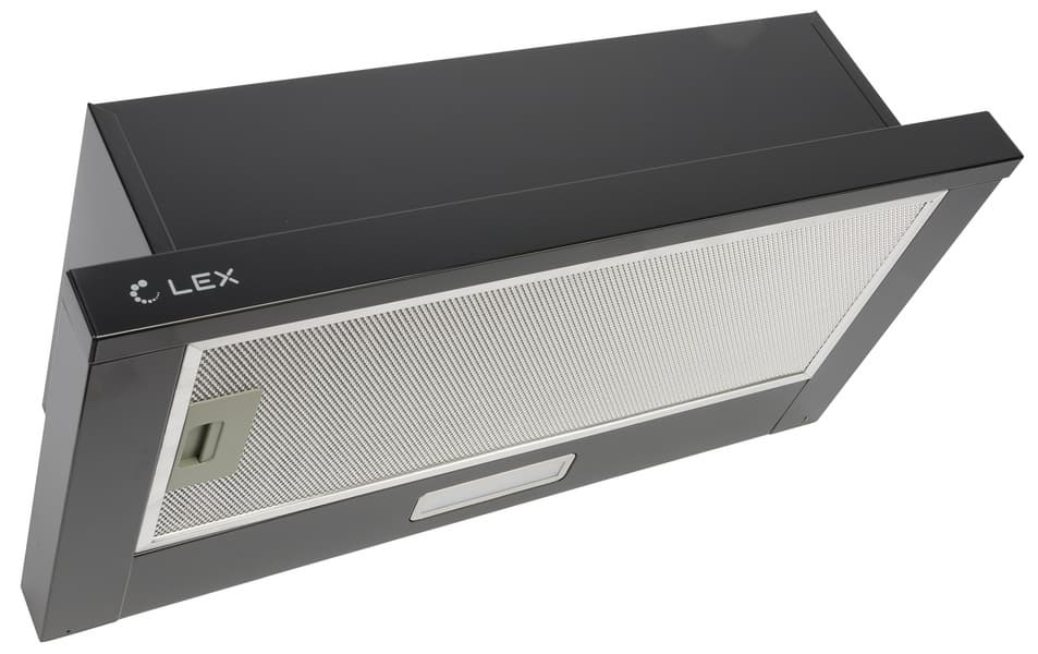 Кухонная вытяжка Lex Hogan 600 Black может использоваться как в качестве встраиваемой, так и в роли настенной. Это очень удобно, например, если покупка кухонного гарнитура откладывается, а вытяжка нужна прямо сейчас: сначала вешаем вытяжку на стену, а когда мебельщики закончат монтаж кухни — встроим ее в шкаф.