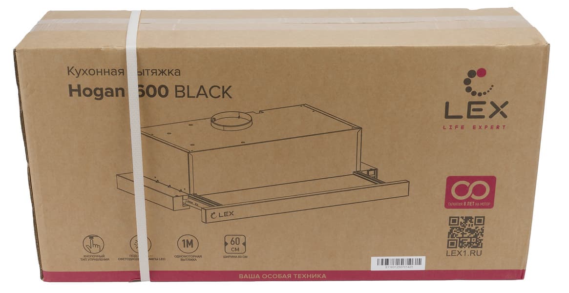 Сегодня мы рассматриваем одно из таких устройств: небольшую и несложную вытяжку Lex Hogan 600, выполненную в черном цвете. У данной модели имеется один мотор, светодиодная подсветка и две скорости работы.