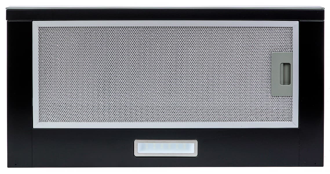 Lex Hubble G 600 — горизонтальная вытяжка с выдвигающимся вперед дополнительным фильтром, который чуть меньше основного. Лицевая сторона подвижной панели отделана стеклом черного цвета с логотипом производителя. Никаких других надписей (в том числе и номера модели) на корпусе нет.