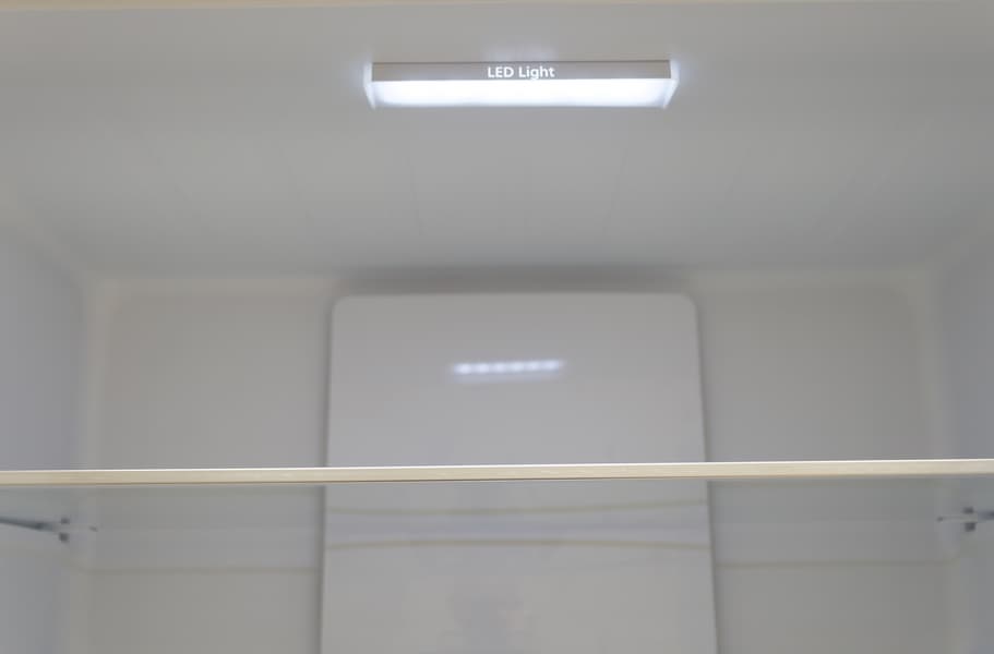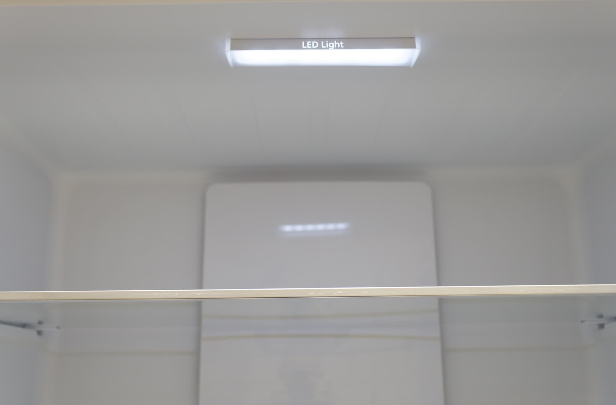 На верхней панели размещен прямоугольный плафон светодиодной подсветки. Холодильная камера Lex LCD450XID освещается достаточно ярким для комфортного поиска продуктов холодным светом .