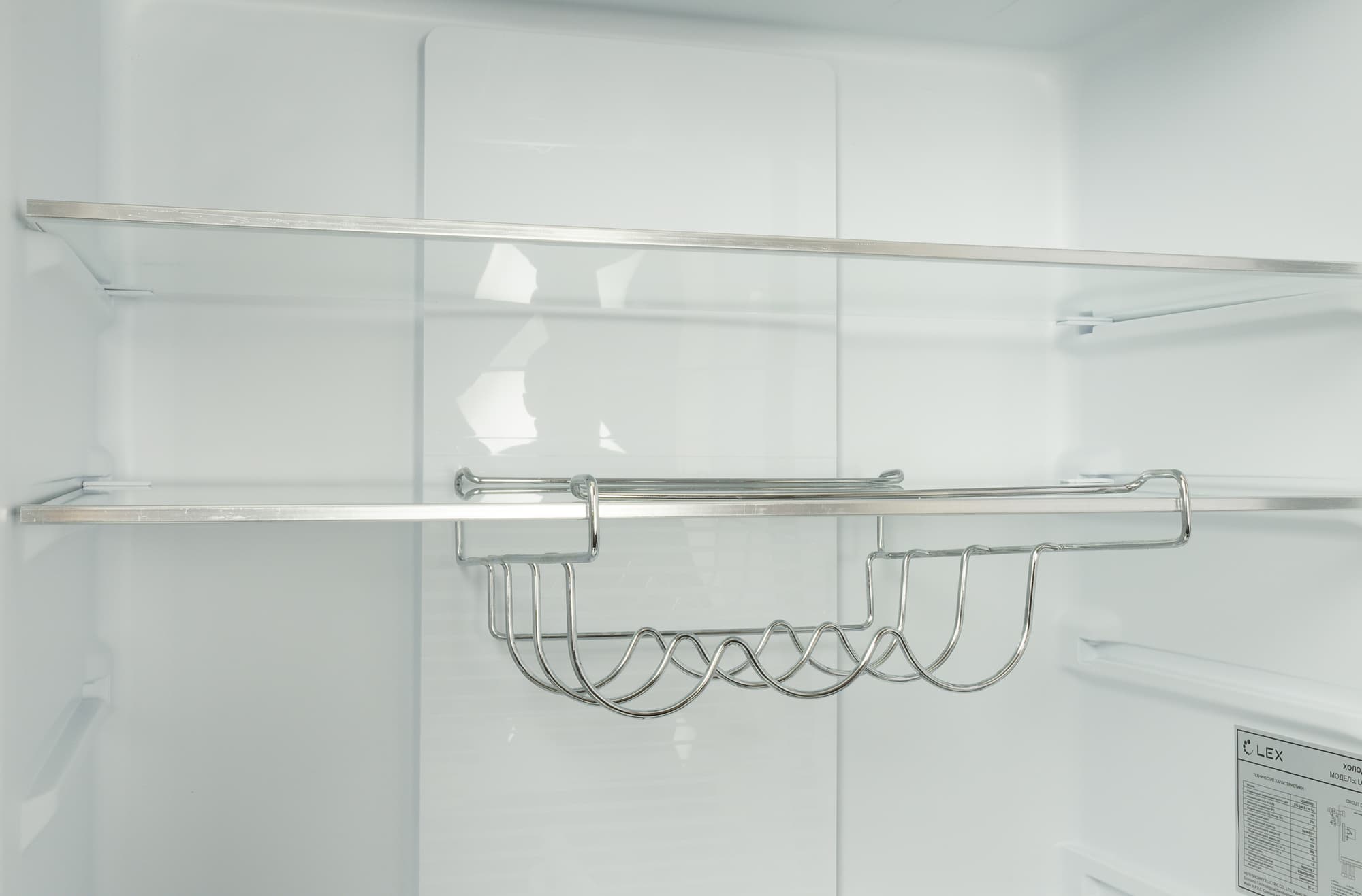 Дополнительное пространство можно освободить за счет съемного металлического держателя для бутылок.