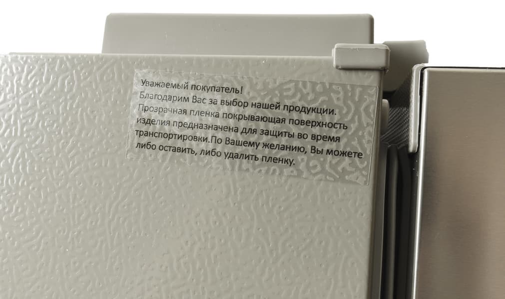 Дверцы и боковые стенки нового холодильника обтянуты для лучшей сохранности прозрачной полиэтиленовой пленкой. Перед началом эксплуатации ее можно снять.