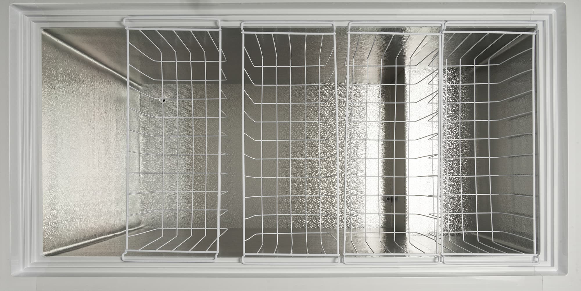 Внутреннее освещение — элемент, не е слишком часто встречающийся в морозильных ларях. Несмотря на явный прогресс в разработке светодиодов с низким тепловыделением, большинство производителей, вероятно, до сих пор избегают размещать световое оборудование в замораживаемой зоне, и наша модель оказалась приятным исключением из этого правила.