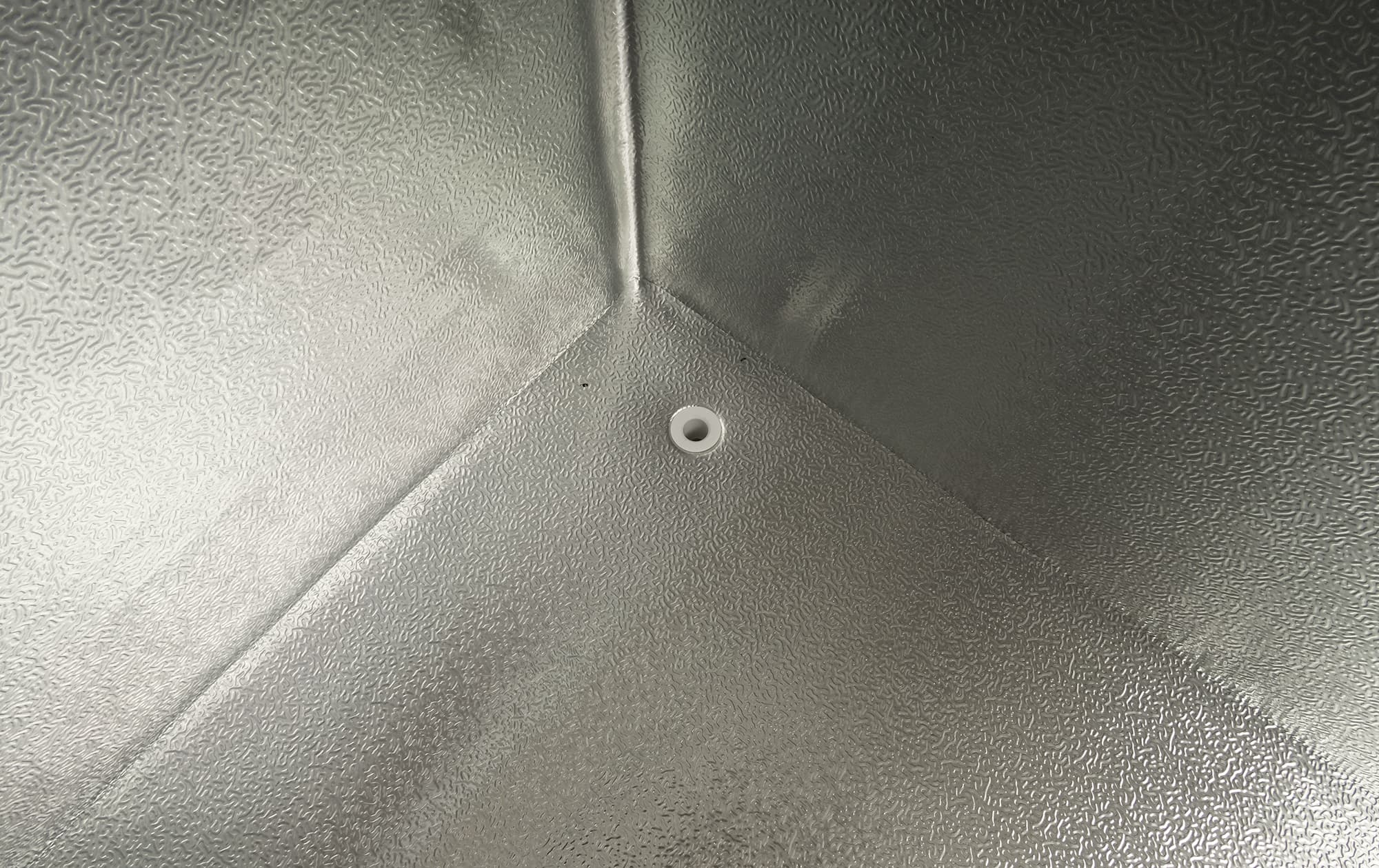 На дне мы видим дренажное отверстие, закрытое пластиковой пробкой — такой же, как и снаружи.