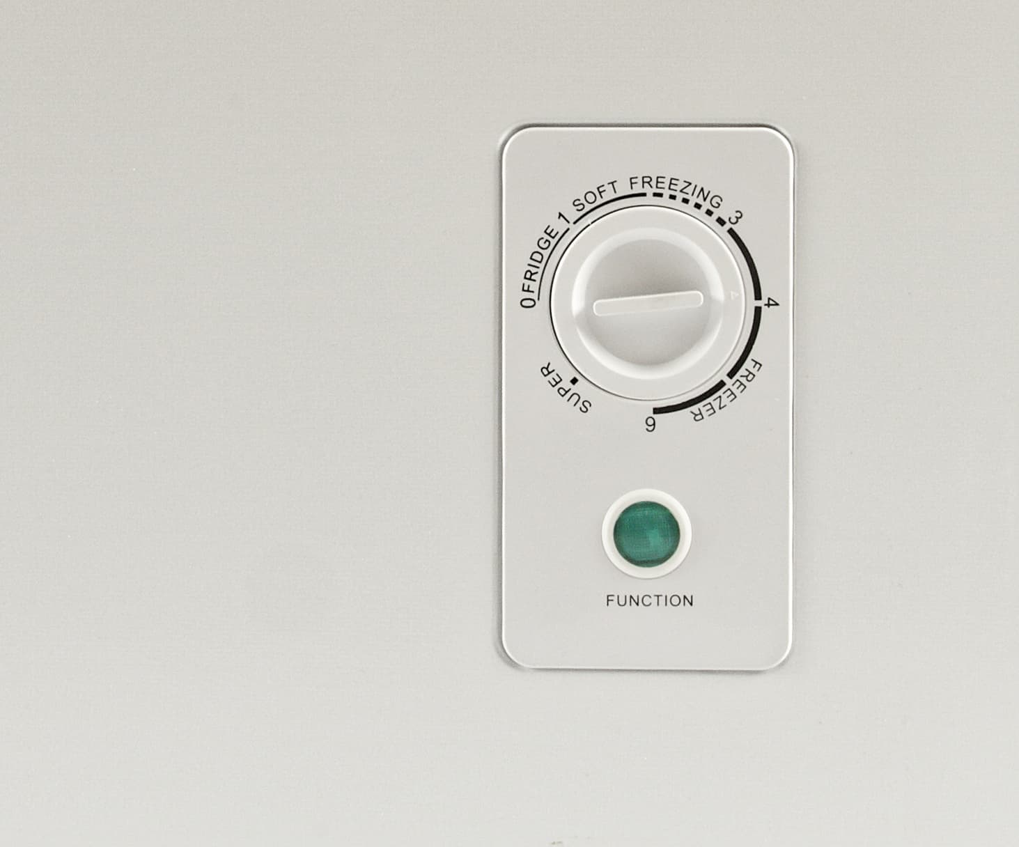 Панель управления состоит из механического регулятора мощности охлаждения и зеленого индикатора питания.