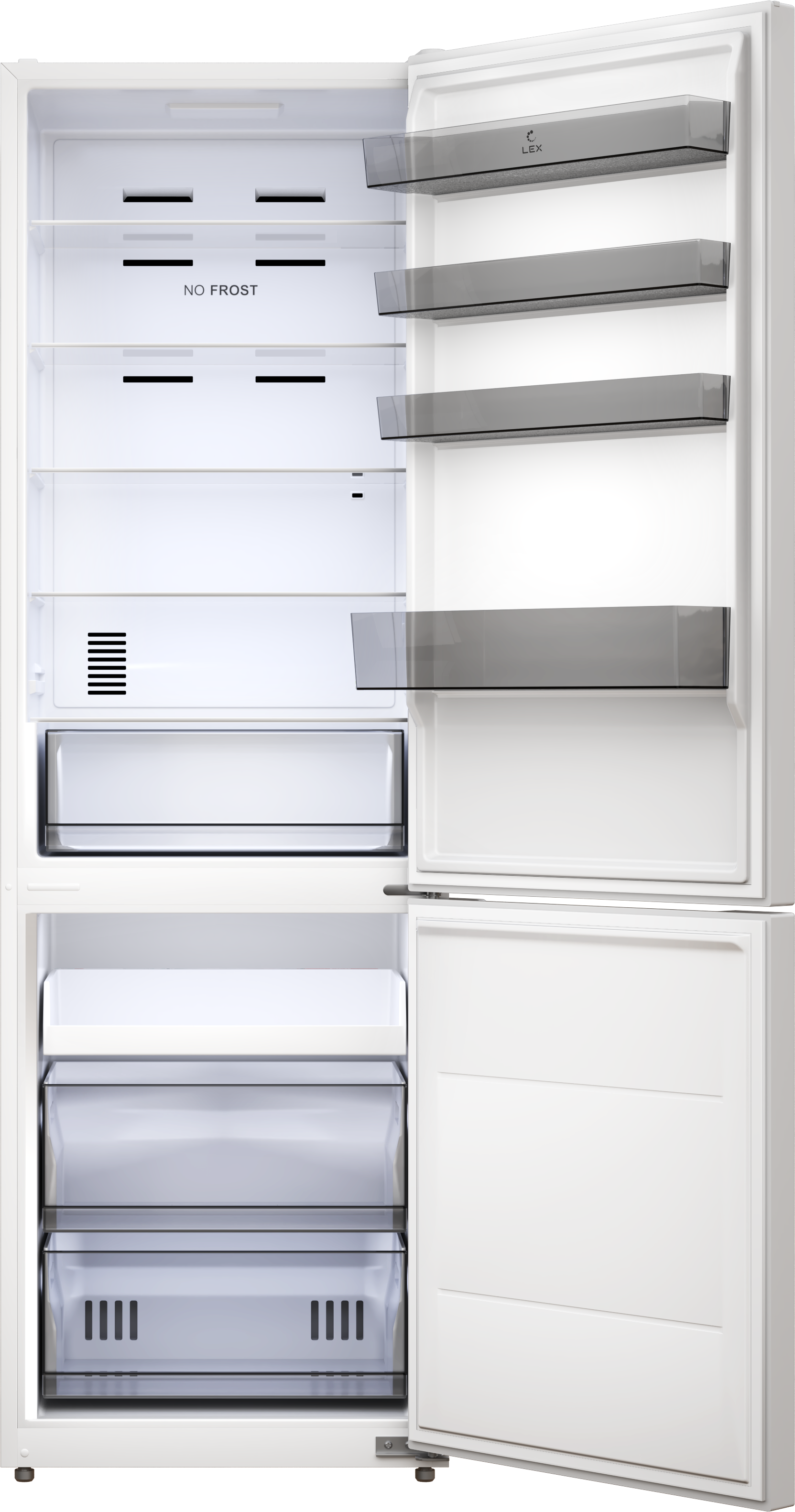 Двухкамерный холодильник Lex LKB201WIDMax при стандартных ширине и высоте отличается от большинства сходных моделей увеличенной глубиной. За счет увеличения габаритов и удачной внутренней конструкции производителю удалось существенно расширить полезный объем холодильного и морозильного отделений.