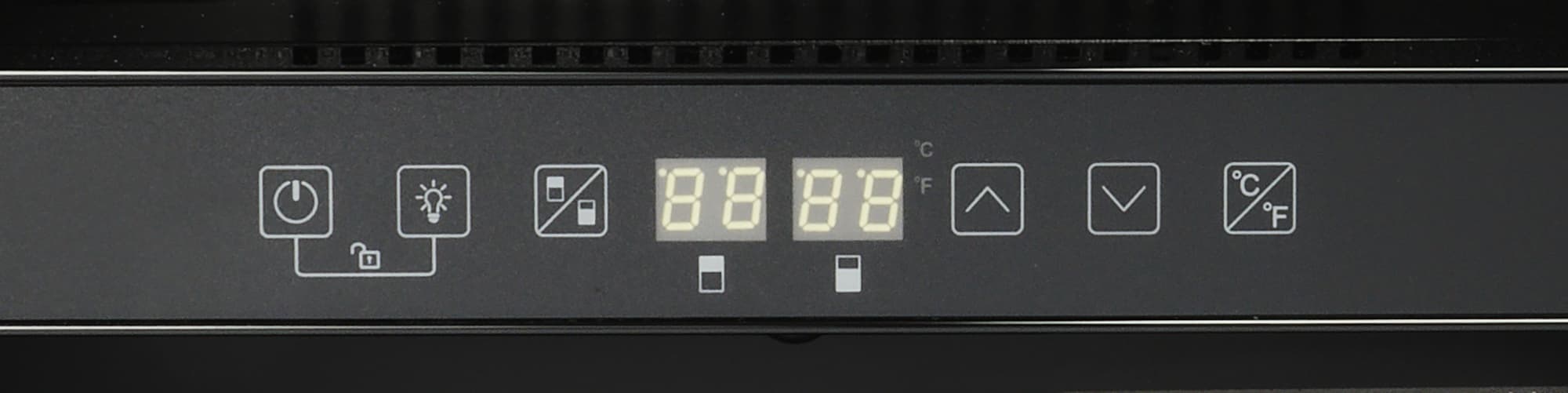 Цифровой дисплей состоит из двух групп семисегментных светодиодных индикаторов белого цвета. На нем отображается текущая или устанавливаемая температура в верхнем и нижнем отделениях.