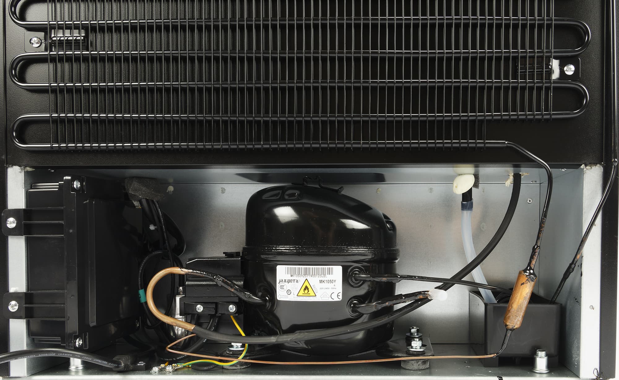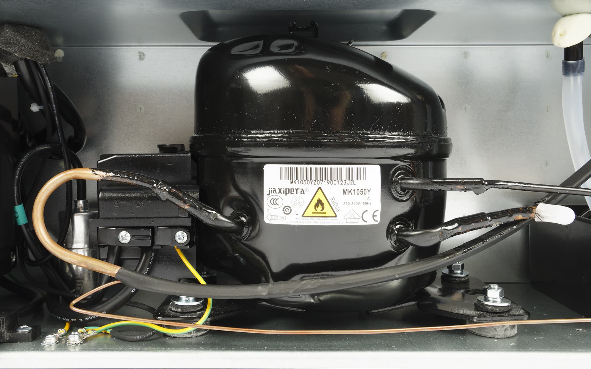 В конструкции Lex LWD6036BL dual zone PP использован малогабаритный компрессор MK1050Y производства китайской компании Jiaxipera Compressor. Мы уже встречали его, знакомясь со встраиваемым холодильником RBI 102 DF этого же производителя. Двигатель, как и полагается, установлен на амортизирующих опорах, снижающих шум и вибрацию.