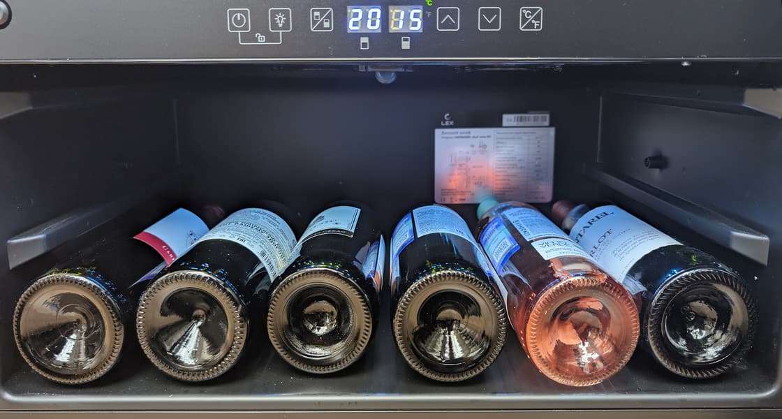 Нужно помнить, что конструкция шкафа налагает определенные ограничения на выбор температуры: в нижнем отделении, меньшем по объему, она не может быть ниже, чем в верхнем. Таким образом, если в вашей энотеке представлены вина разных типов, то для белых и игристых сортов стоит отвести верхнюю зону, а для красных — нижнюю.