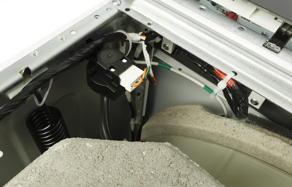 Барабан фиксируется в транспортировочном положении четырьмя болтами с массивными резиновыми шайбами-амортизаторами. Перед первым включением их следует удалить, заменив входящими в комплект пластиковыми заглушками.