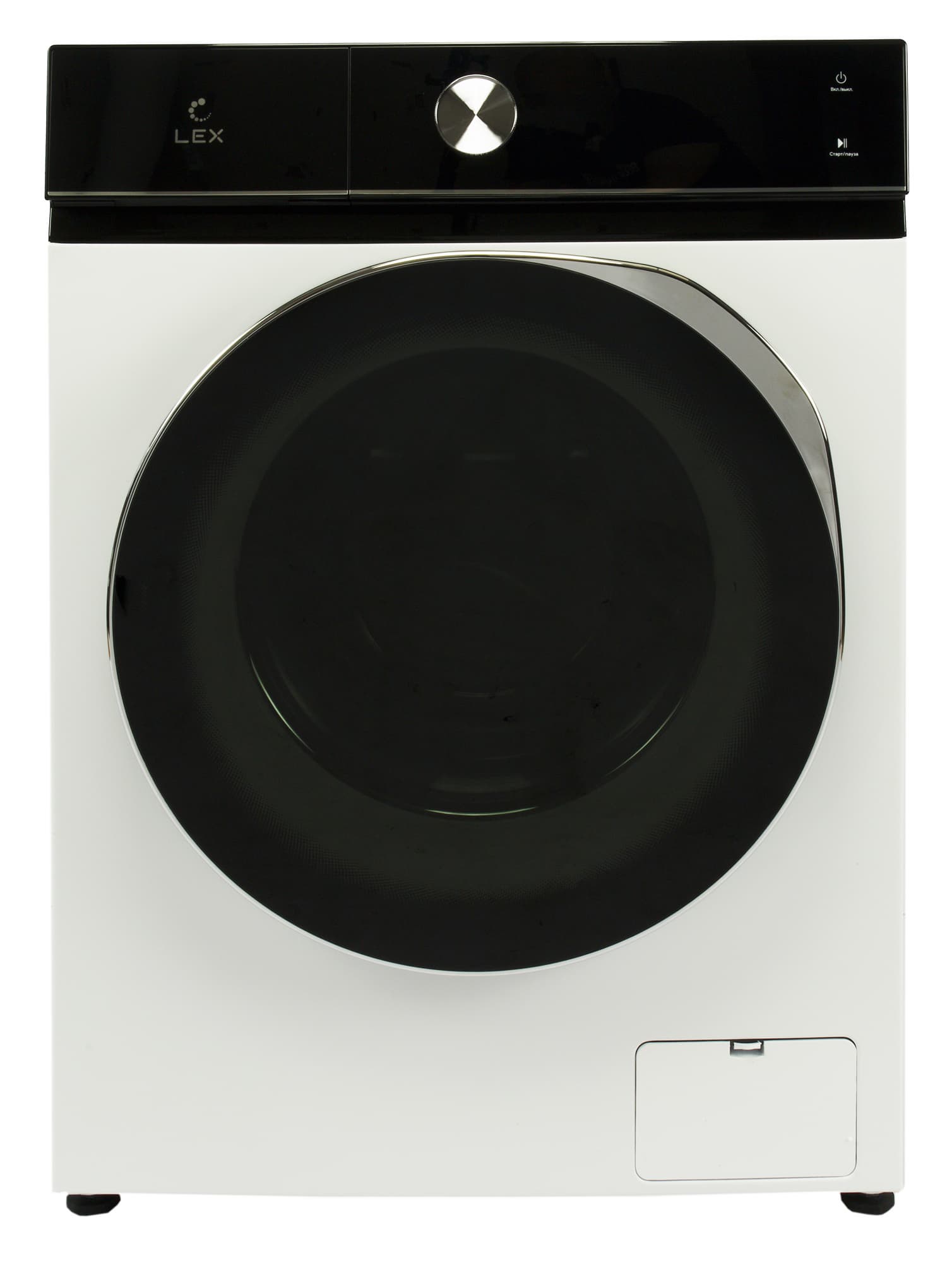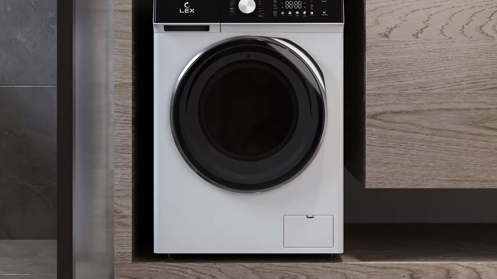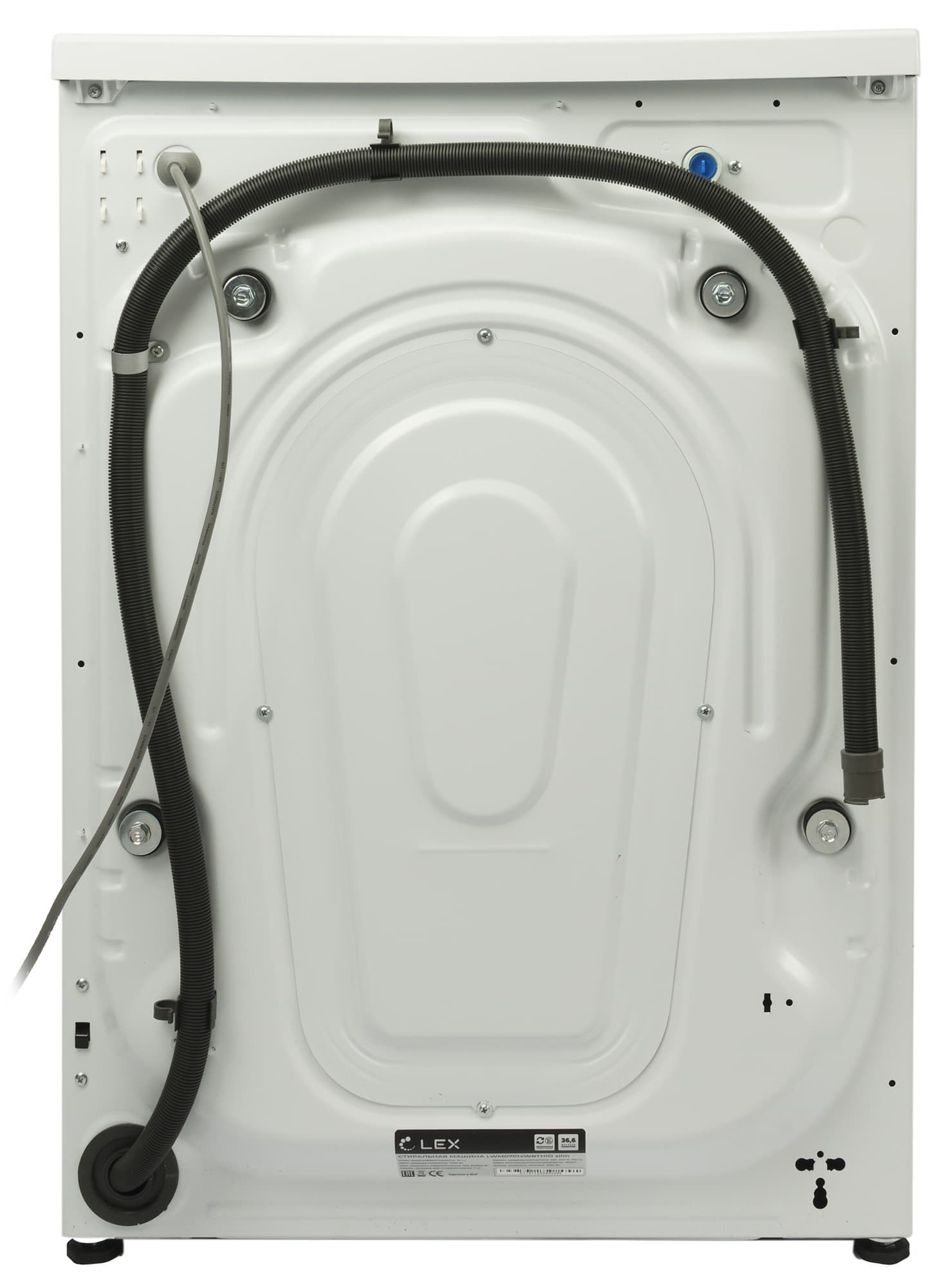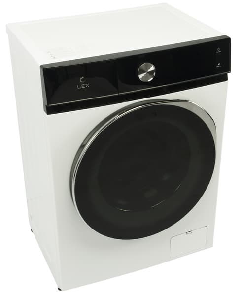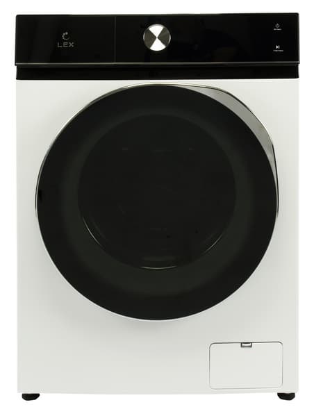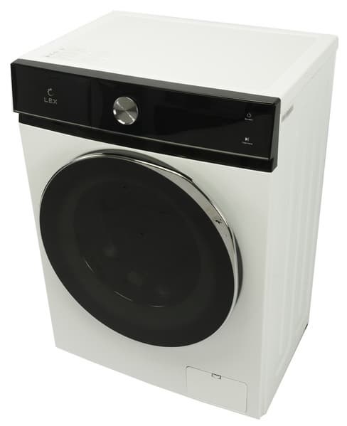 Стиральная машина Lex LWM07014WBTHID оформлена в традиционных для нынешних моделей цветах: черном и белом. Крышка отсека для моющих средств и панель управления визуально объединяются полосой из черного гладкого пластика.