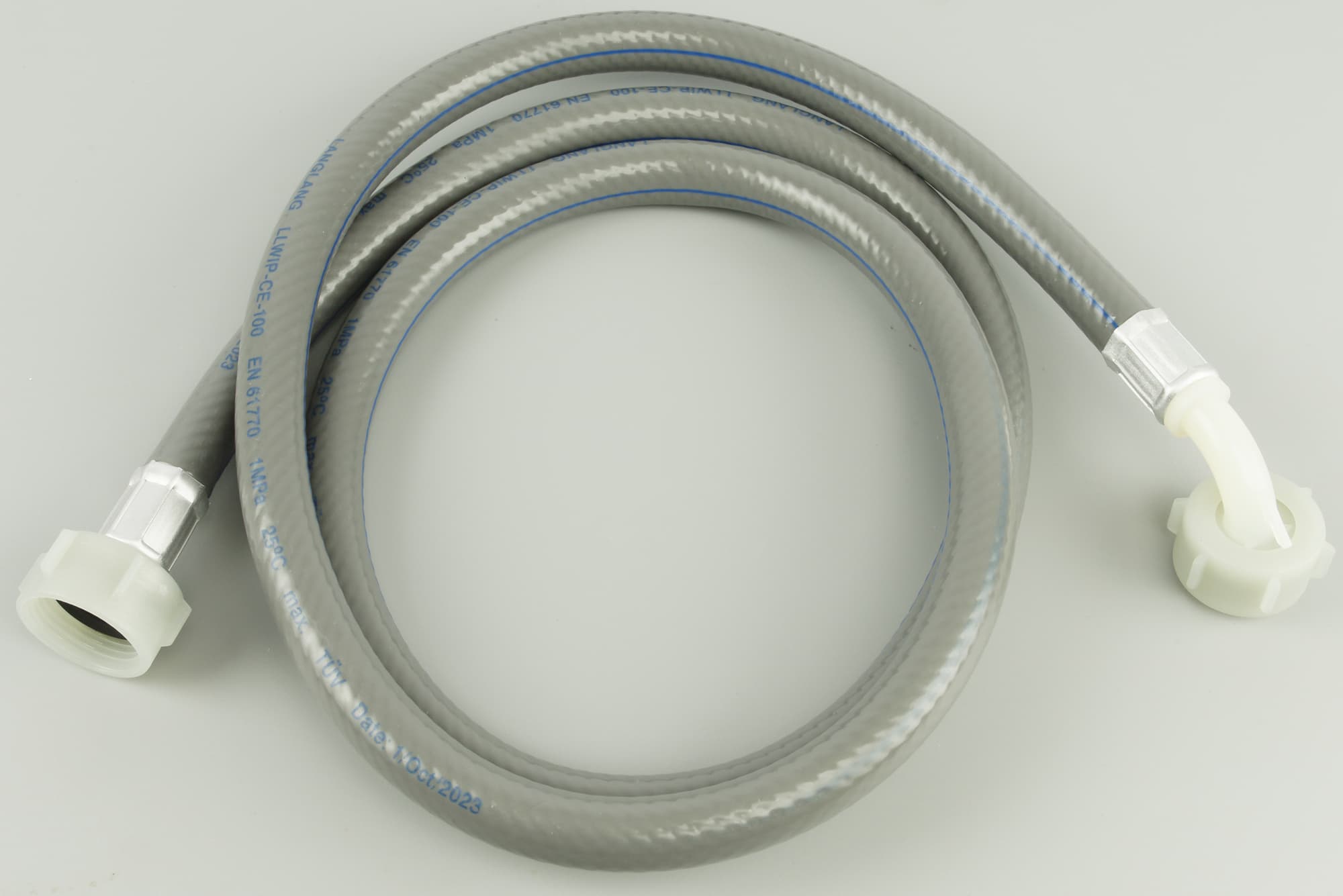 Входящий в комплект заливной шланг — простейшей конструкции. Клапана AquaStop в нем нет.