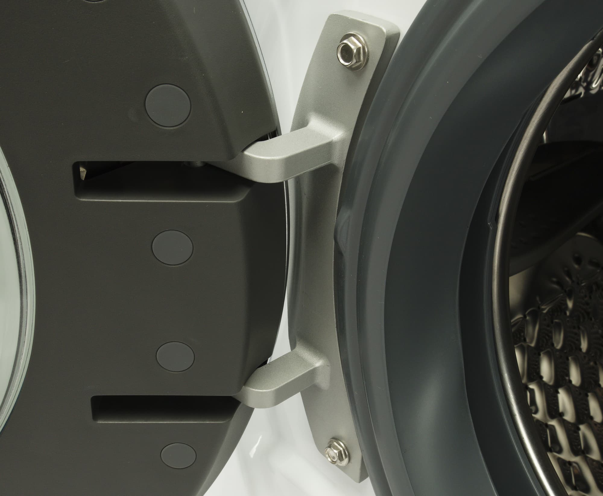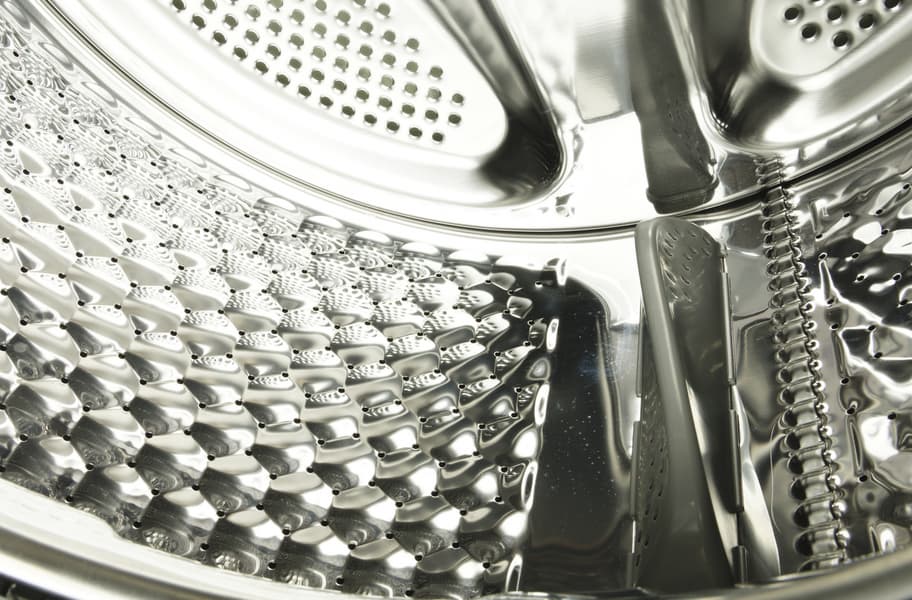 Внутренняя перфорированная поверхность барабана покрыта выштампованными шестиугольниками, улучшающими гидродинамику. Отверстия проделаны и в задней стенке. Волнообразные пластиковые бойники, перемешивающие белье, изящно изогнуты.
