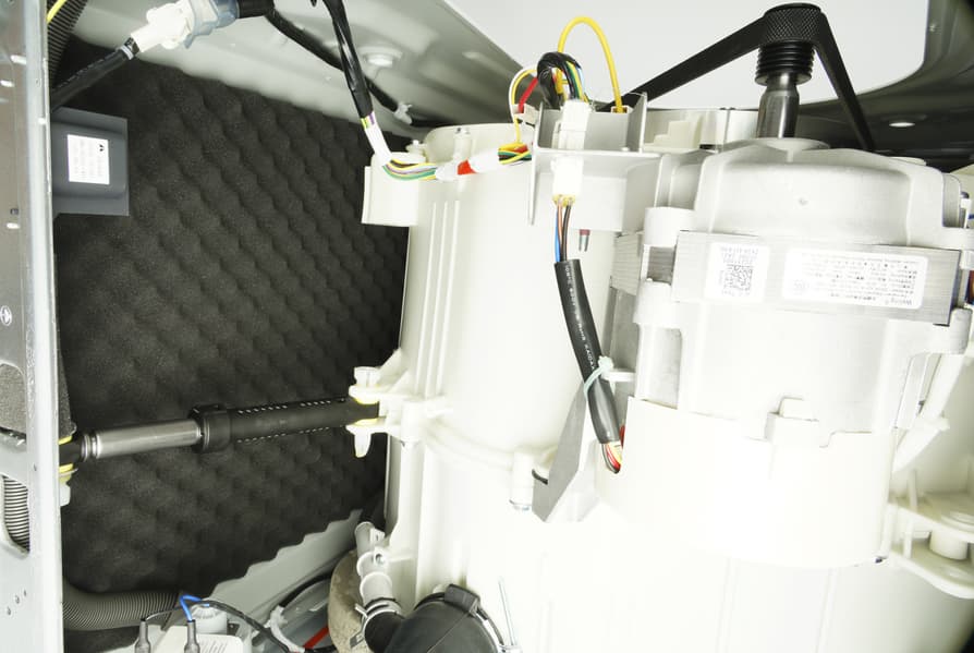 Перфорация на барабане нанесена и по периметру, и на торцевую стенку. На боковых поверхностях имеются специальные пластиковые бойники. Их задача — обеспечить наилучшее перемешивание содержимого барабана в процессе стирки, а также предоставить равномерный доступ воды ко всему объему белья в процессе стирки.