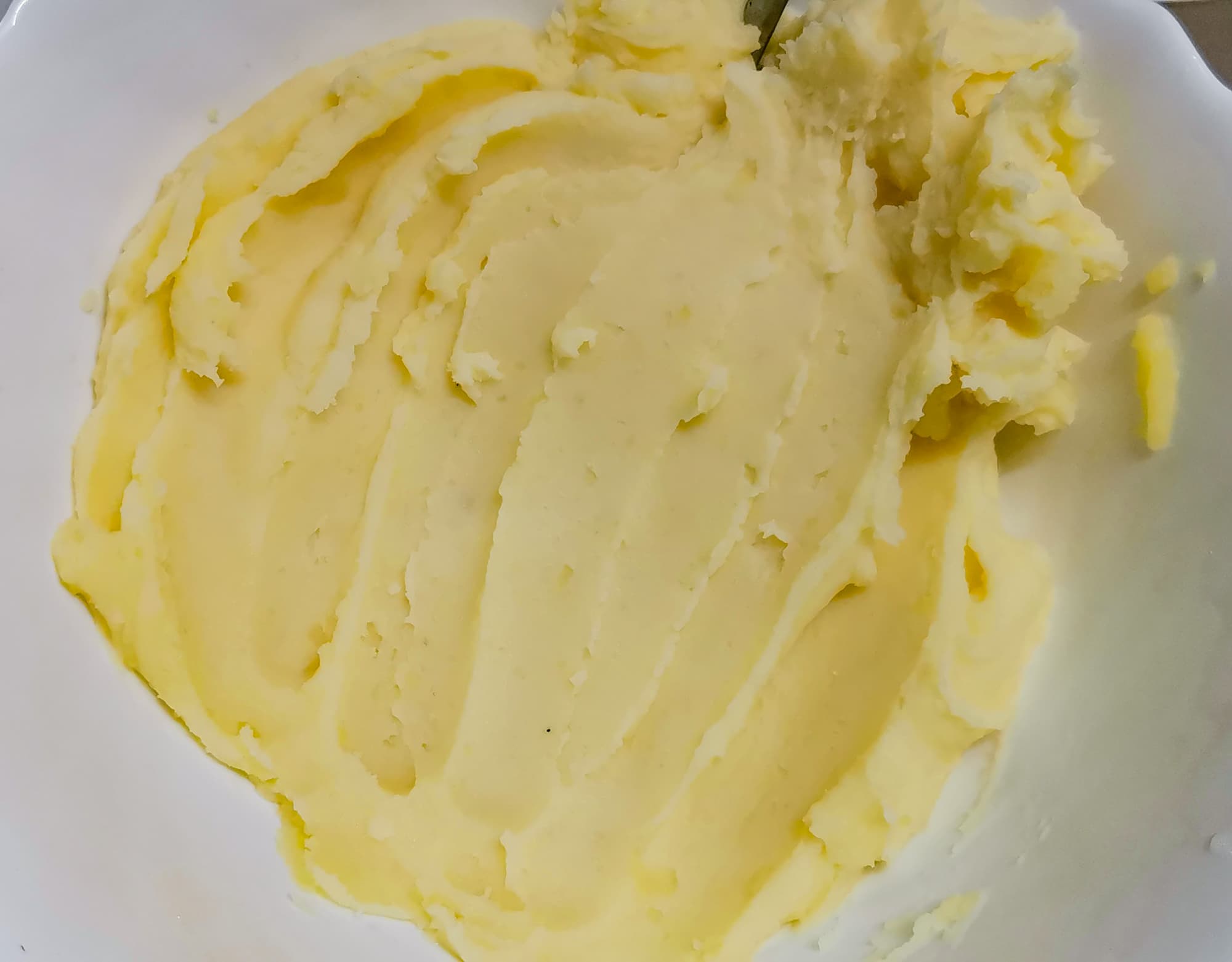 К массе добавили соль, молоко и сливочное масло и с помощью той же насадки перемешали пюре до гомогенного состояния.