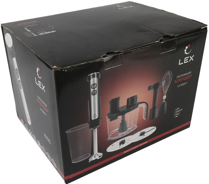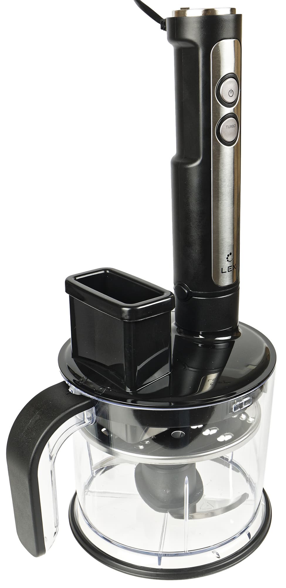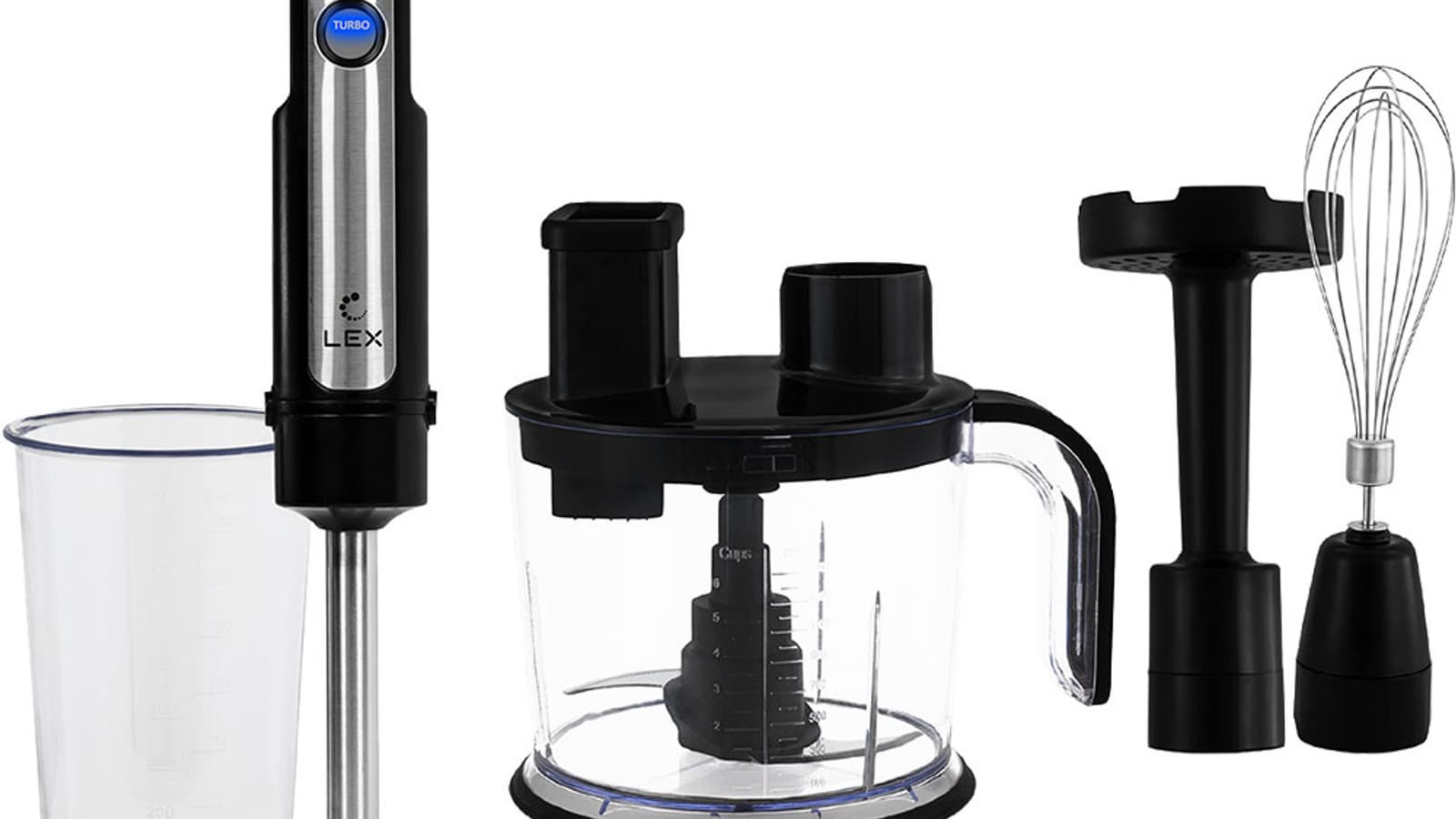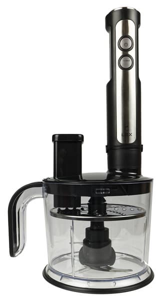 LX 10011-1 компании Lex — это не просто погружной блендер. Скорее, это небольшой кухонный комбайн: он может быть измельчителем, теркой, шинковкой, миксером и блендером, при этом прибор не занимает много места. Будем смотреть, на что он способен, тестировать удобство его сборки и эксплуатации.