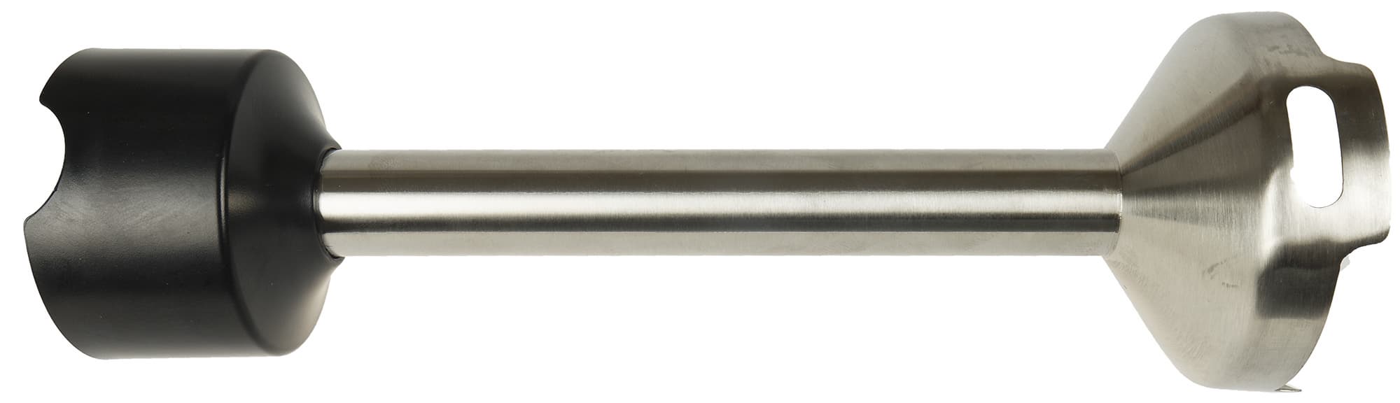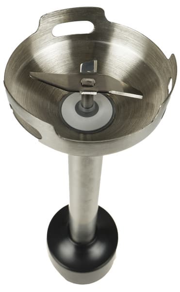 Насадка для пюре большая с широкой чашей на конце. Дырочки в чаше разного размера, нож выполнен из пластика.