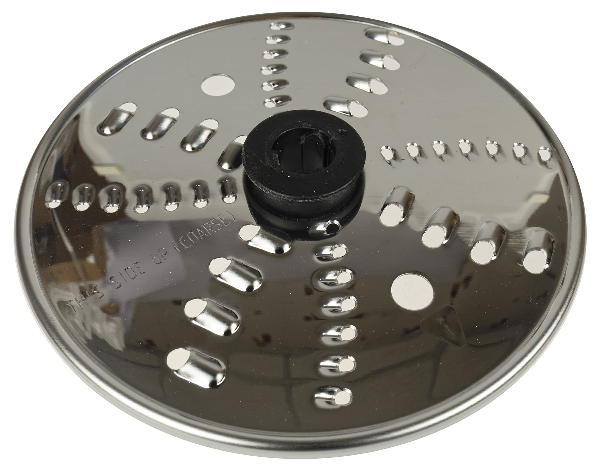 В комплекте 2 диска, но оба имеют две рабочие стороны с разным размером нарезки. Таким образом продукты можно натереть на крупной и на мелкой терке и нашинковать тонкими или толстыми слайсами.
