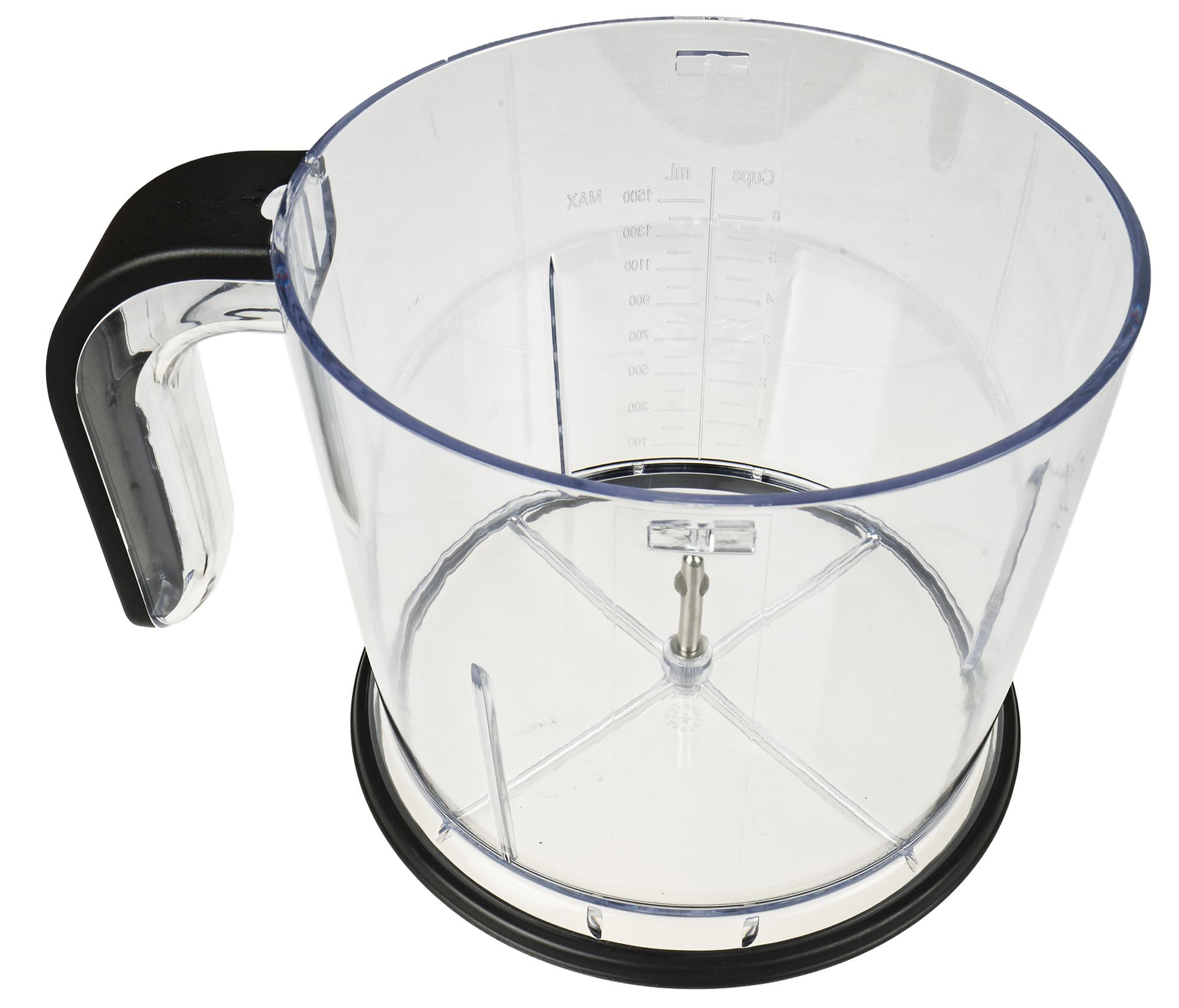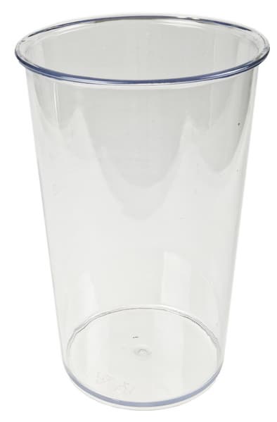Чаша, несмотря на кажущуюся компактность, довольно вместительная. Она сделана из прозрачного пластика с удобной ручкой и встроенным штырем для насаживания втулки. На боку нанесена мерная шкала в миллилитрах и чашках.