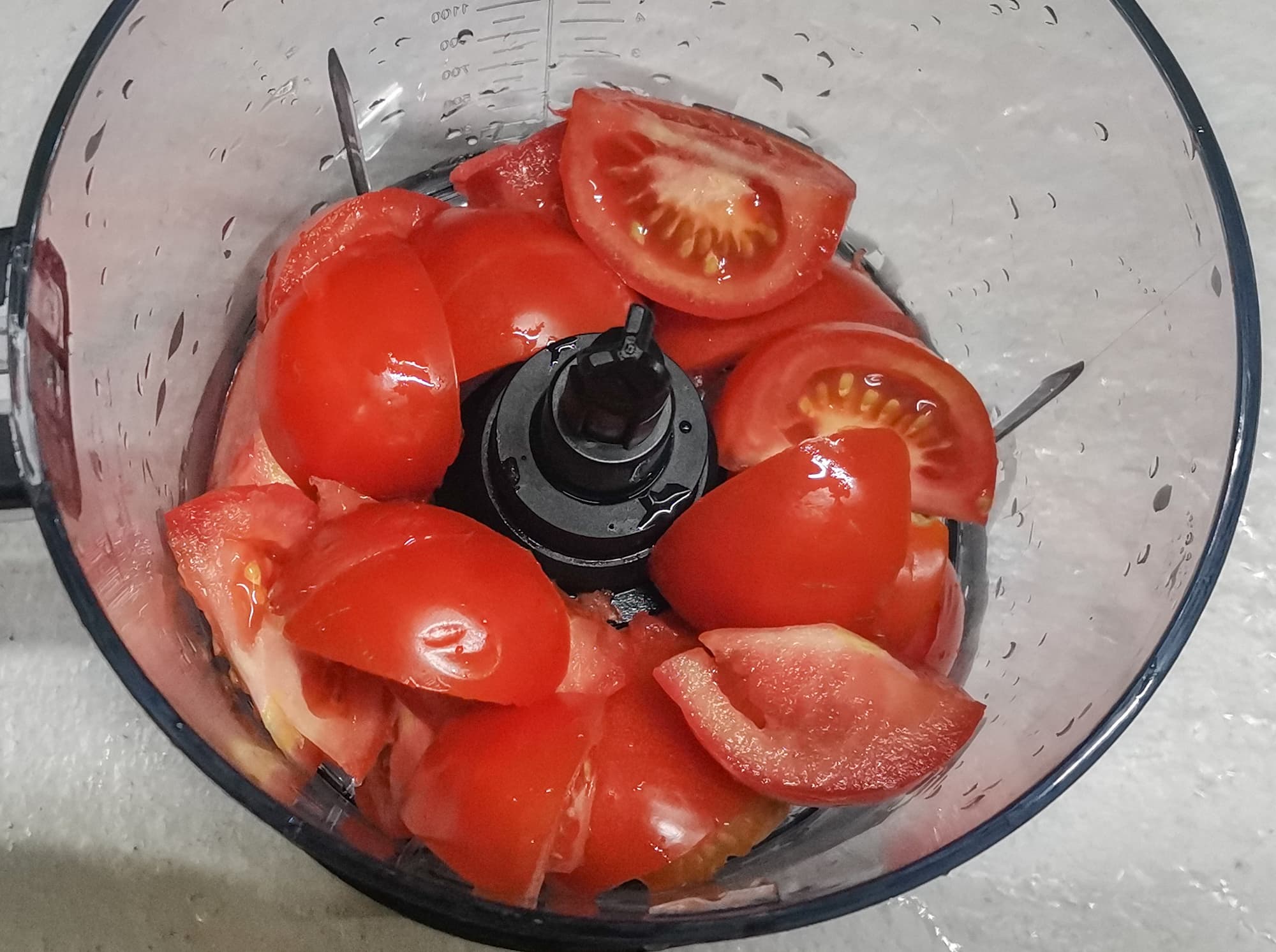 Измельчитель неплохо справляется с томатами. Ножи в блоке очень острые и нужно быть осторожным при работе с ними.