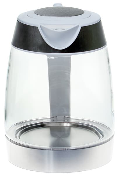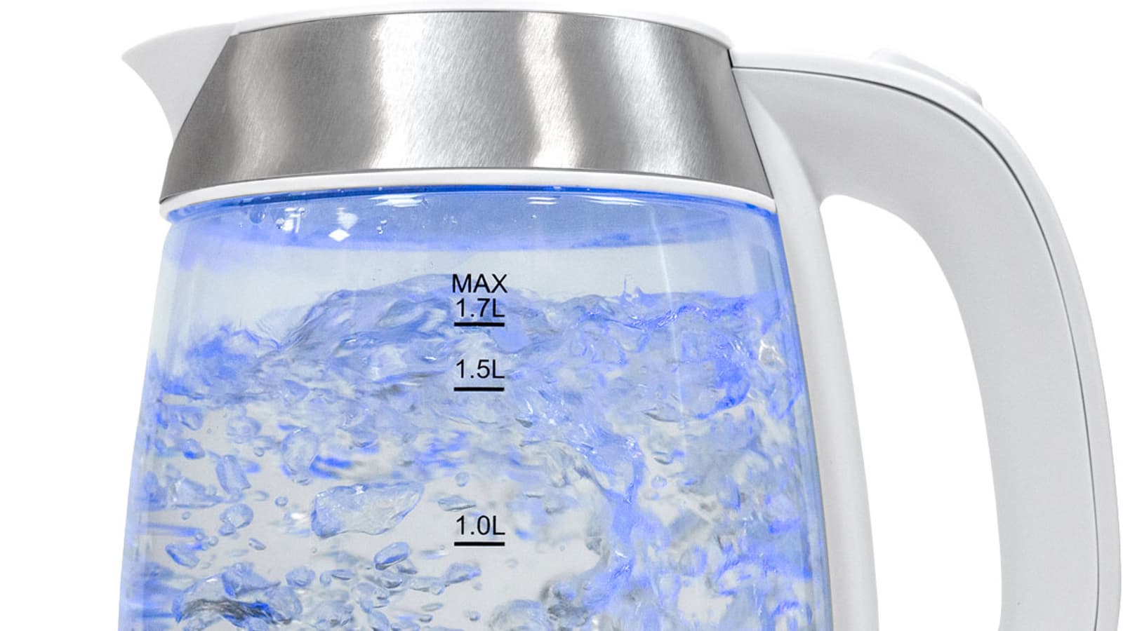 На этом потенциальные претензии к прибору у нас заканчиваются. Работает чайник как положено — не слишком громко шумит, исправно греет воду и отключается после закипания. Благодаря светодиодной подсветке колбы всегда можно понять, работает ли чайник в данный момент или уже закипел и отключился.