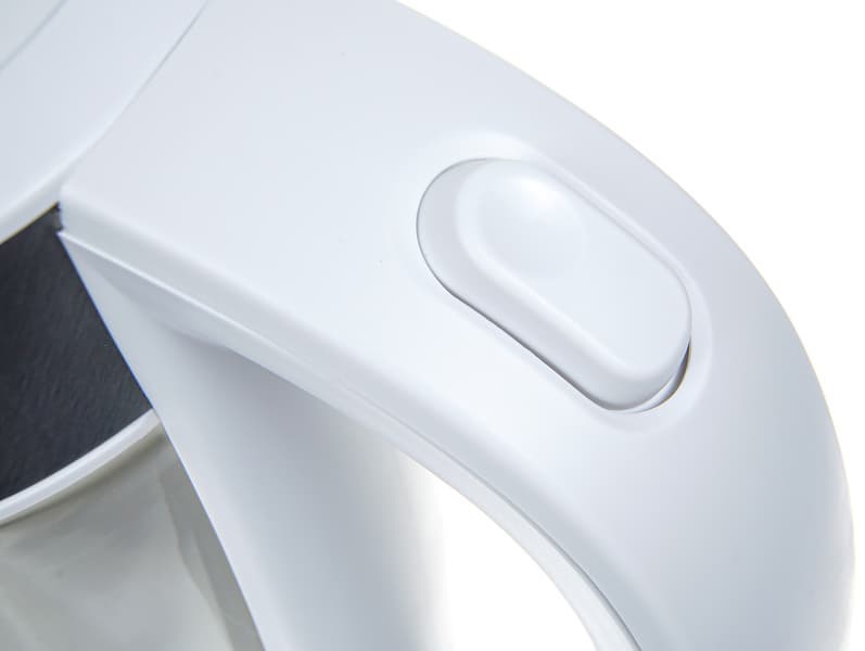 Управление чайником осуществляется с помощью классического рычажка. Рычажок нажат — чайник греет воду. Вода закипела — срабатывает система автоматического отключения и рычажок отщелкивается вверх (в исходное положение).