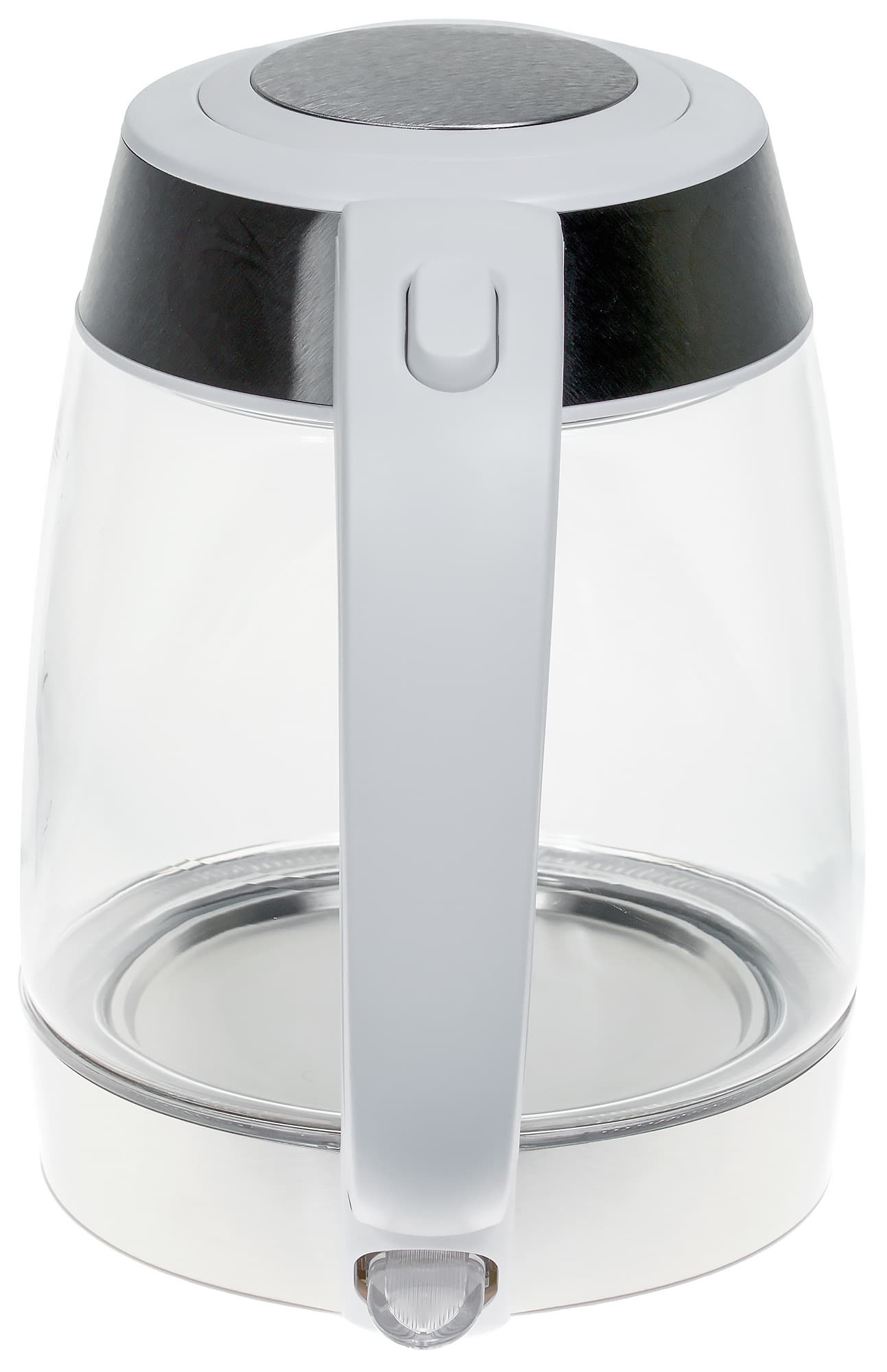 Колба у нашего чайника стеклянная. Слева на ней нанесена градуировка с отметками 0,5, 1, 1,5 и 1,7 литра.
