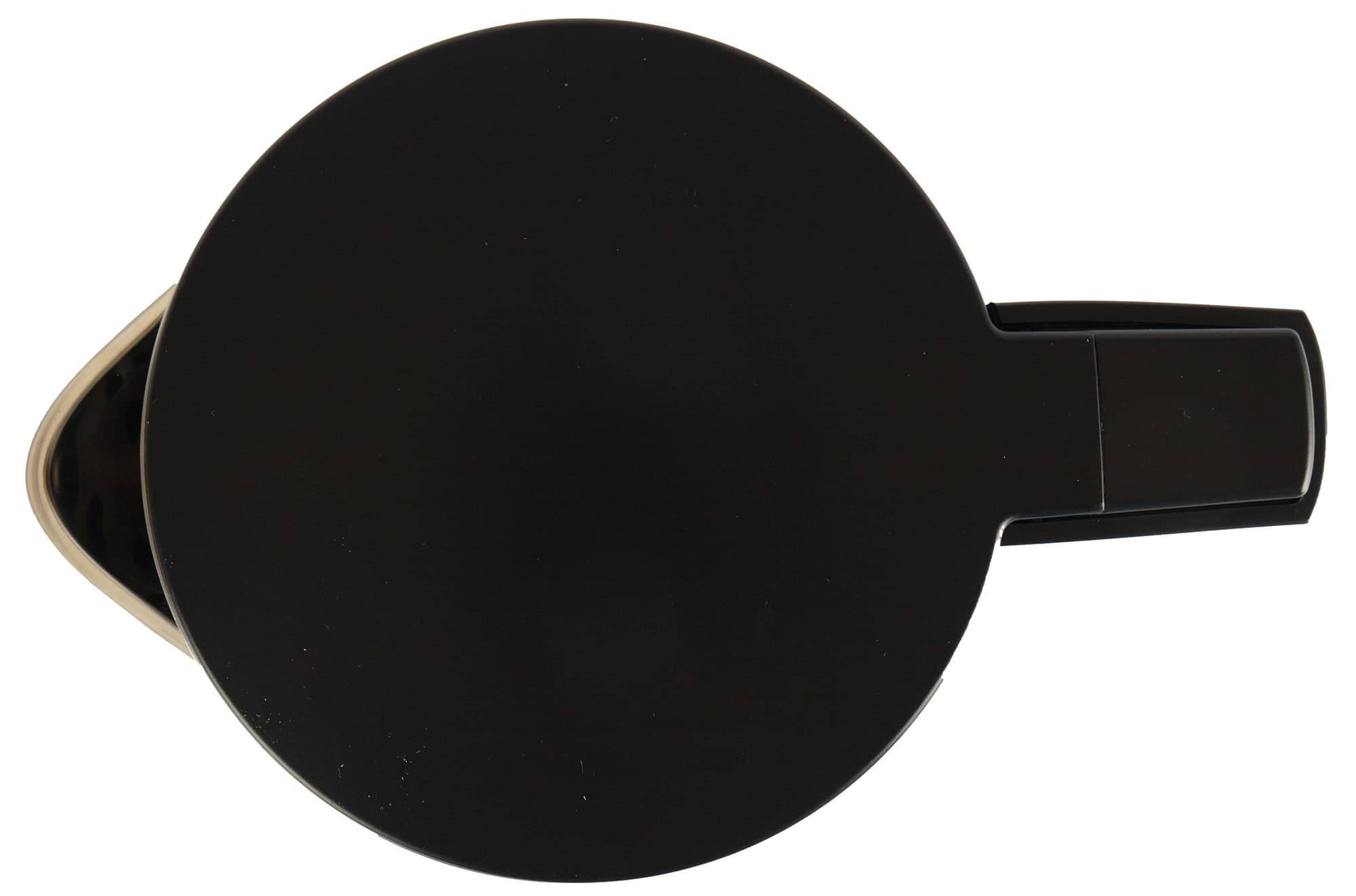 У двухслойного корпуса снаружи нет индикатора уровня воды. Риски, обозначающие объем, выдавлены на внутренней стороне емкости. Отмечены уровни 0,2, 0,6, 1,2, 1,5 и 1,7 литра. Дно чайника гладкое, нагревательный элемент — скрытого типа. Над поверхностью выступает датчик температуры.