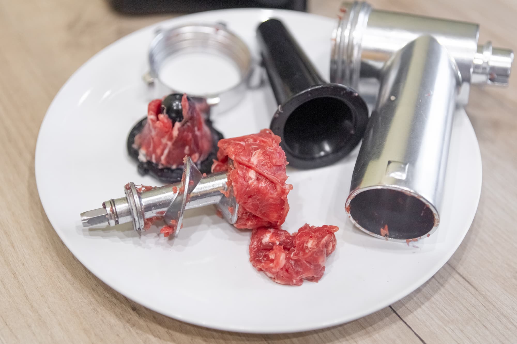 Мясорубка показала стабильную работу вне зависимости от перерабатываемого сырья. Мы остались довольны ее производительностью. За все время тестирования прибор ни разу не заглох и не перегрелся. Прибор одинаково хорошо справился и с простыми задачами, и с нашим классическим стресс-тестом. Стоит также отметить минимальное количество «отходов производства».