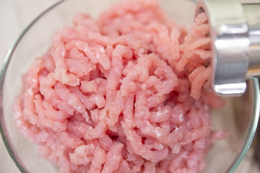 Фарш получился не скомканным и в меру рассыпчатым. Как и в тесте со свининой, в готовом фарше присутствовало минимальное количество не до конца переработанных фрагментов мяса.