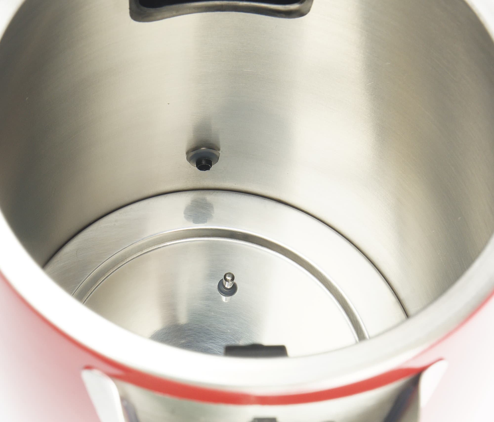 Нагревательный элемент у LX 30021-2 скрытого типа. Внутри емкости на дне можно видеть металлический колпачок термодатчика, а на стенках — отверстия индикатора уровня.