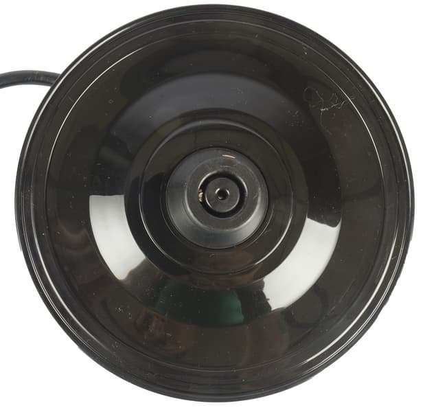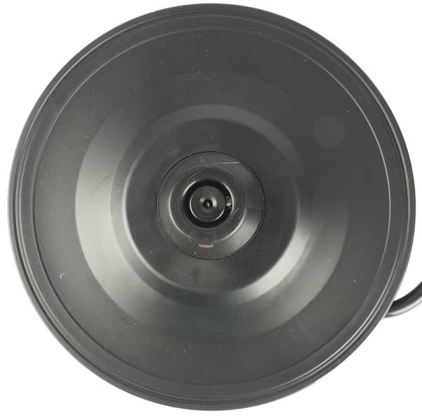 На нижней стороне чайника располагается такая же трехконтактная розетка, как и у предыдущих моделей. Здесь же есть стандартная наклейка с серийным номером и дополнительной информацией.