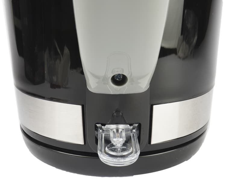 Этот чайник включается клавишей из прозрачного пластика, размещенной в нижней части корпуса, под ручкой.