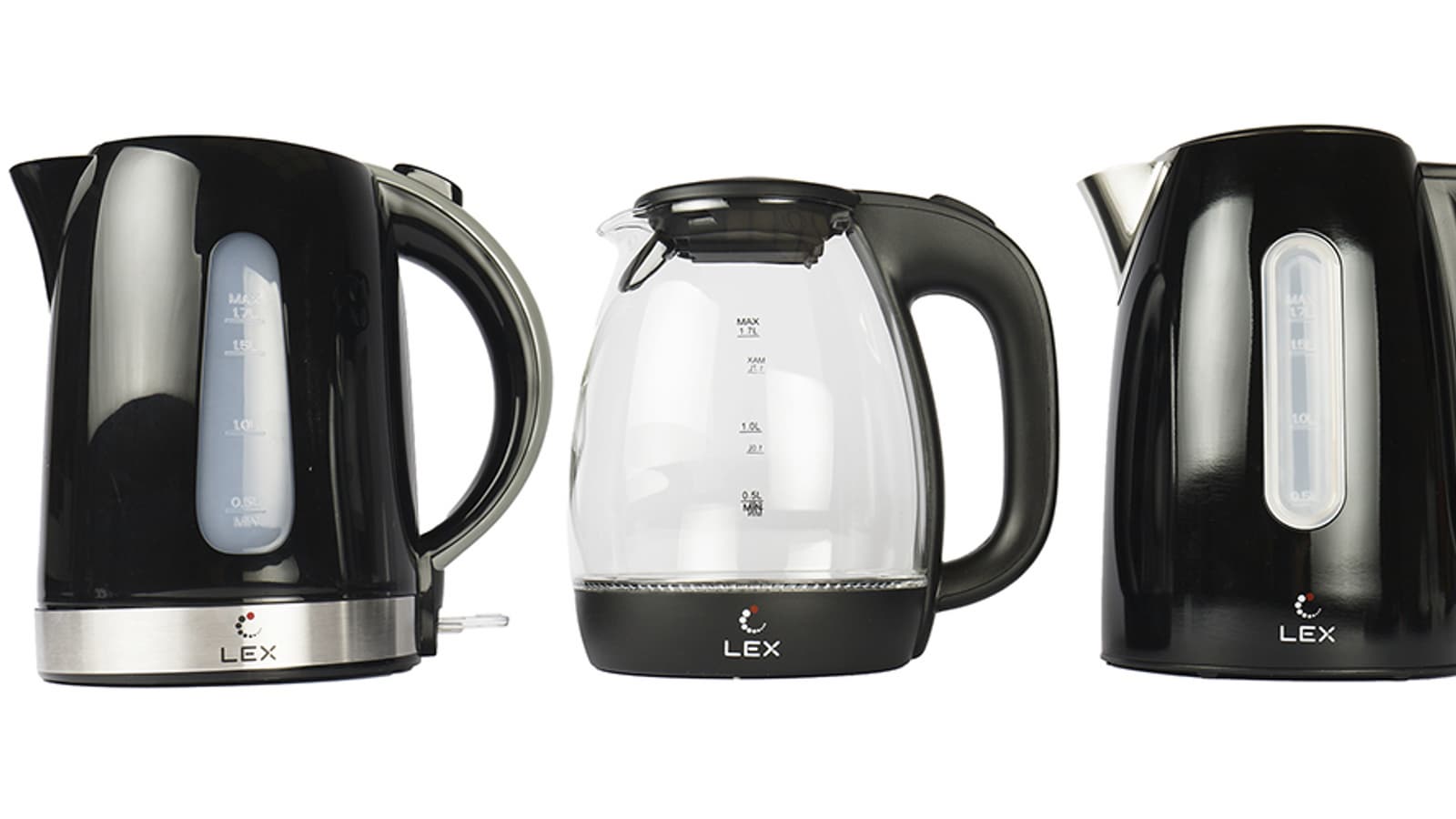 В нашу тестовую лабораторию доставили сразу три чайника одного производителя: Lex LX30028-2, LX3002-1 и LX30017-2. Они похожи, как близнецы, по техническим характеристикам (1,7 литра, 2200 Вт) и минимуму дополнительных функций: ни у одного нет регулировки температуры, беспроводного подключения к сети, интеграции в систему умного дома. Это просто чайники.