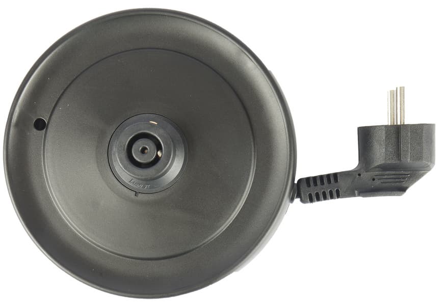 В нижней части подставки есть отсек для хранения излишков электрошнура, позволяющий убрать один или два оборота. Здесь же — наклейка с серийным номером и индексом модели, такая же, как на дне чайника.